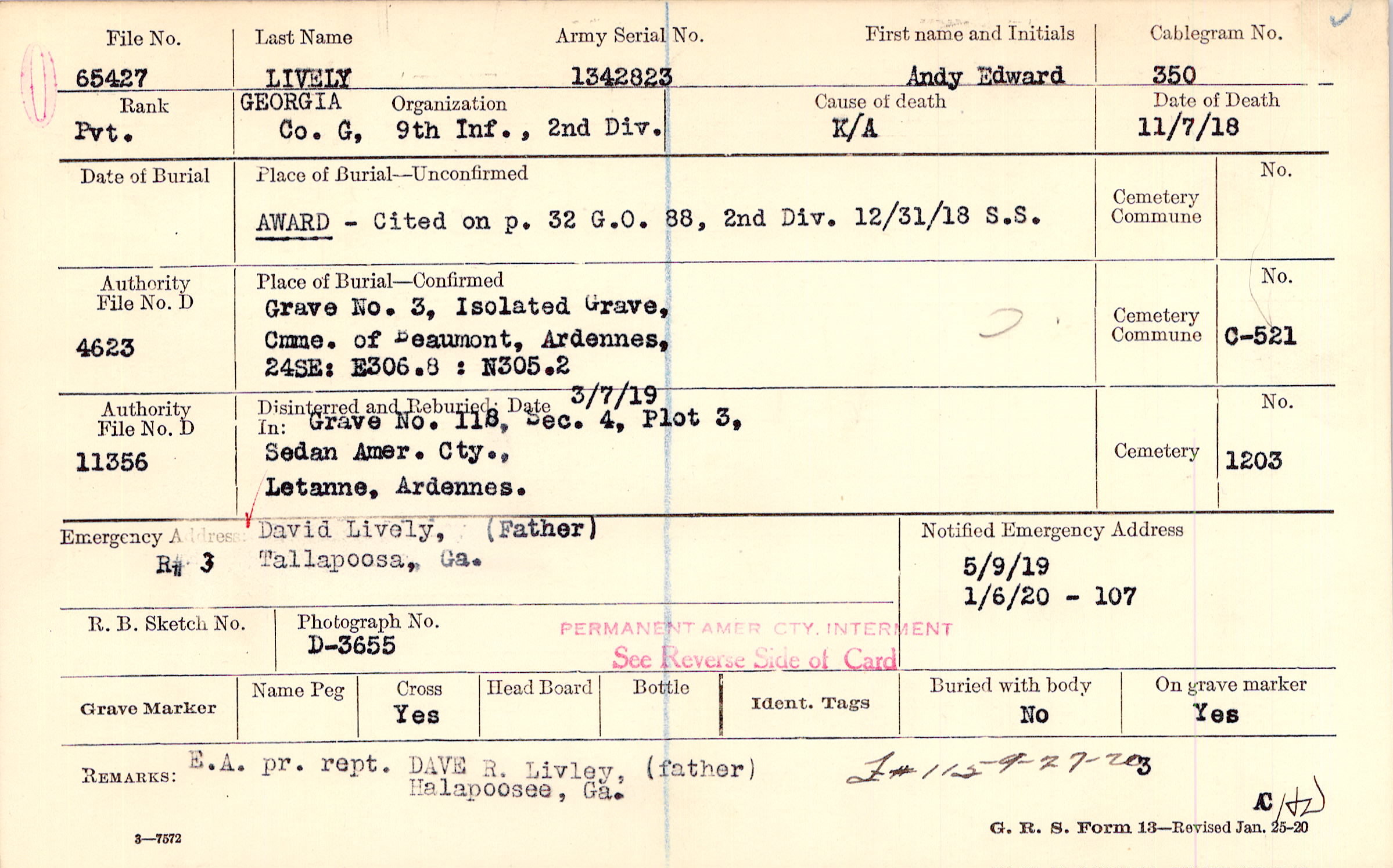 David Lively, (Father), R #3 Tallapoosa, Ga.