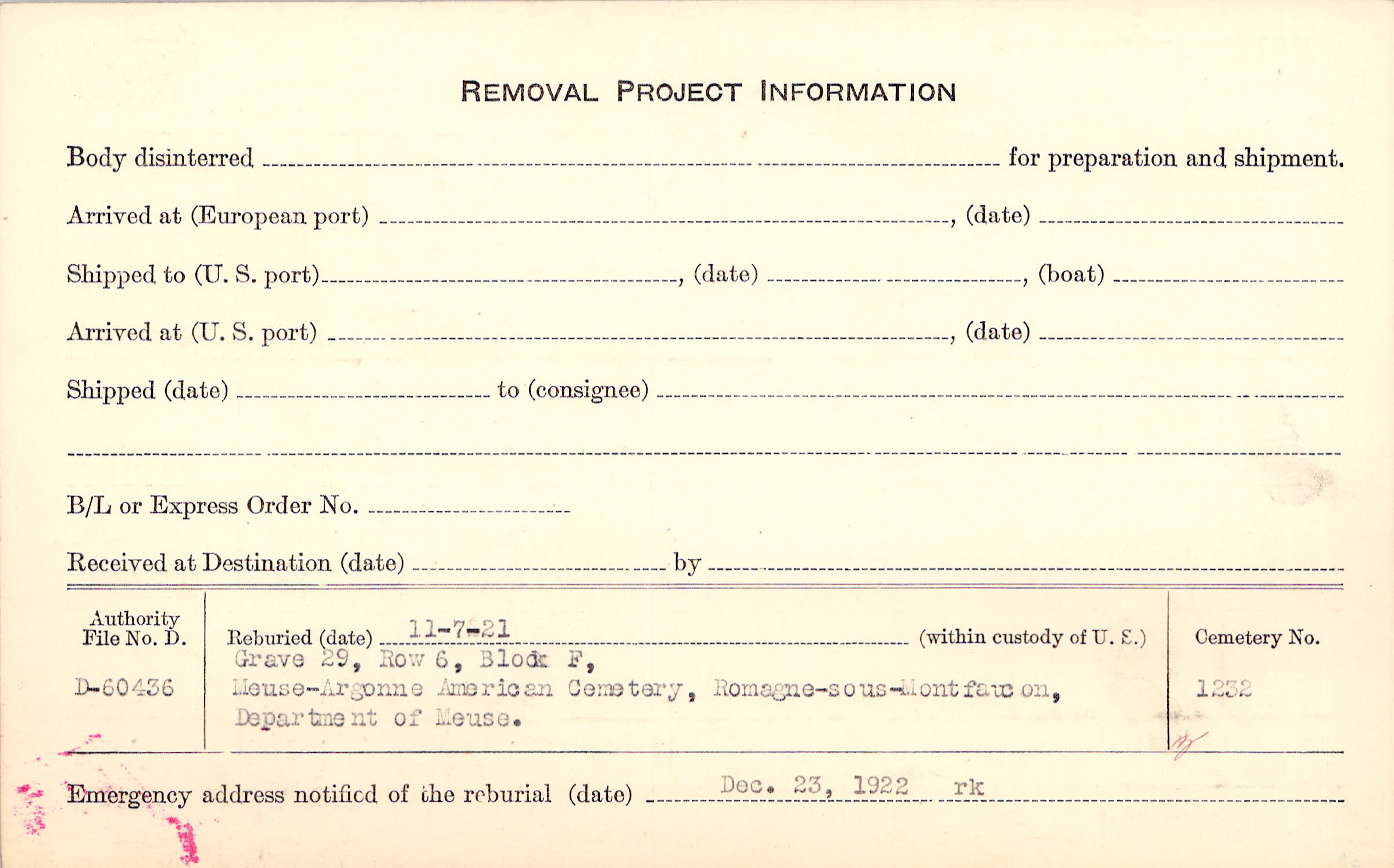 | Permanent Burial in Foreign Cemetery |
