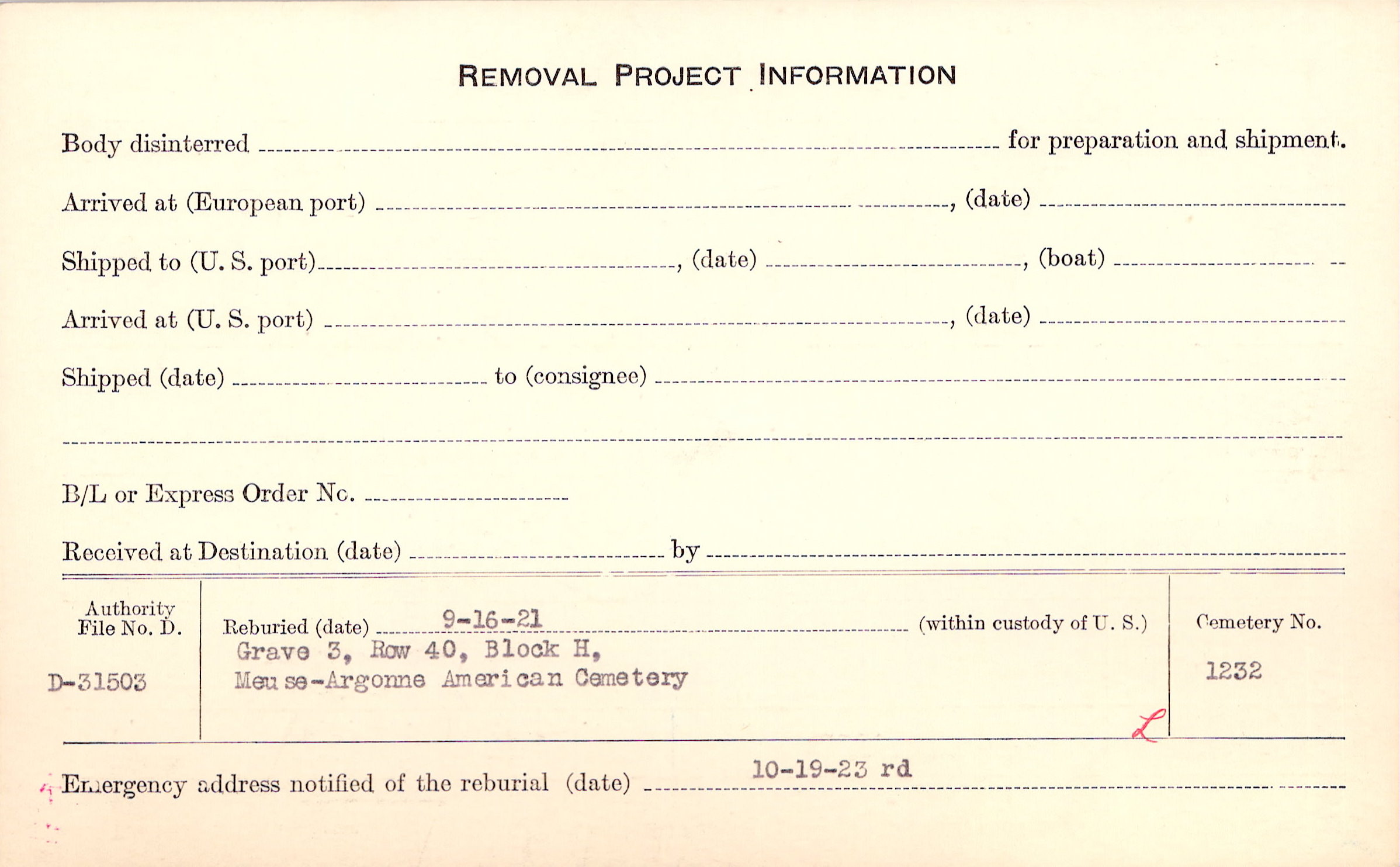 Grave 22, Plot B, Row 1, Amer. Cty., Fleury-sur-Aire, Meuse.