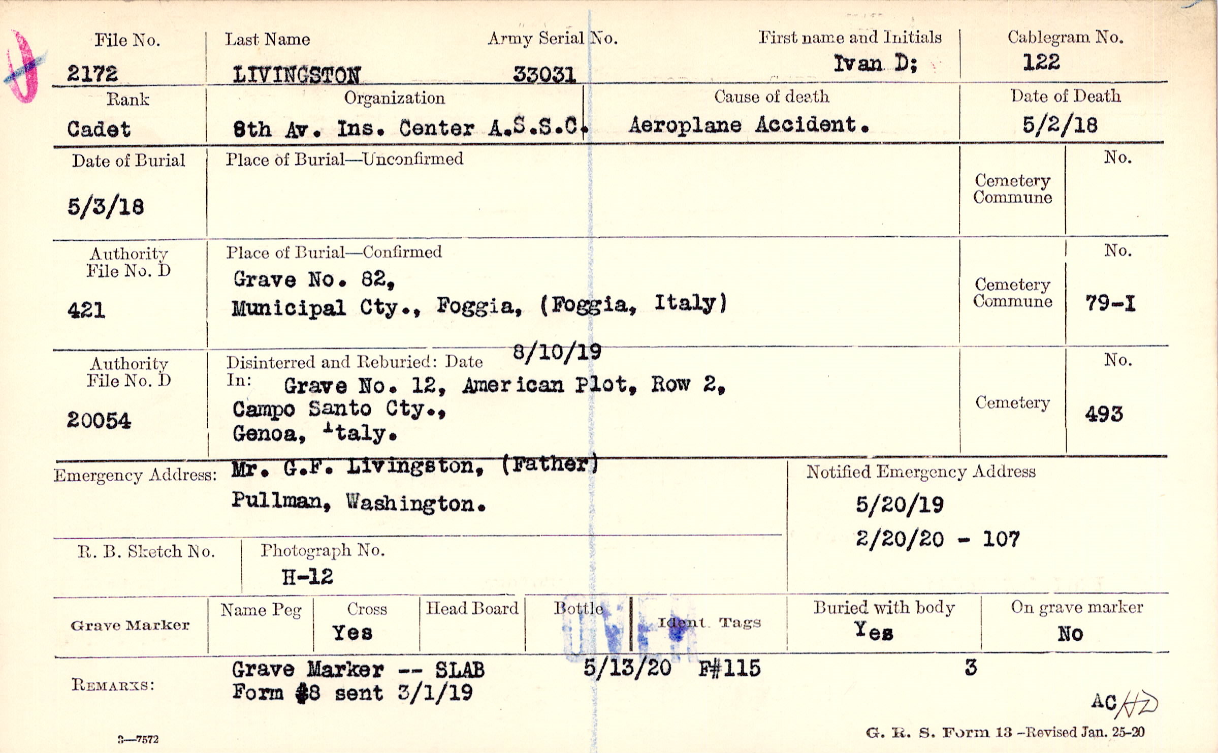 Grave 12, Row 2, Plot American, Campo Santo Cemetery, Genoa, Italy