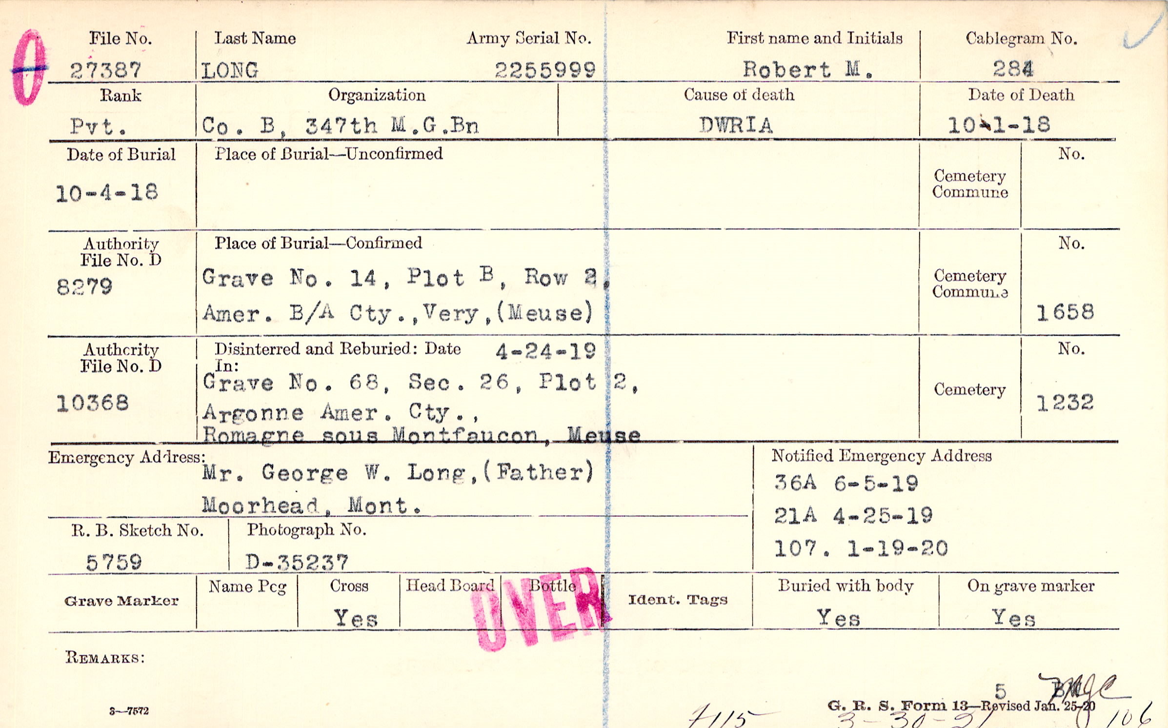Form 36A: 6/5/1919, Form 21A: 4/25/1919, Form 107: 1/19/1920