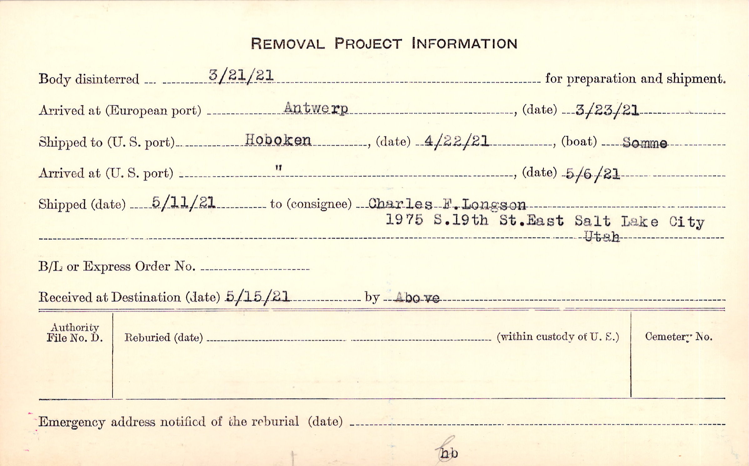 Mrs. Edith Longson (Mother), 1975 S. 19th St., Salt Lake City, Utah.