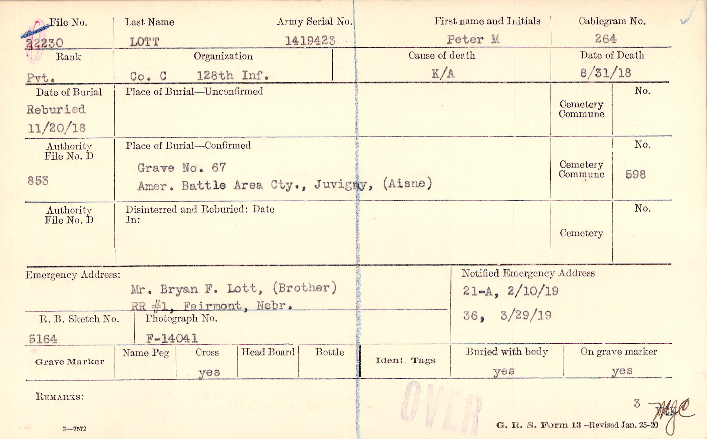 Mr. Bryan F. Lott, (Brother), RR #1, Fairmont, Nebr.