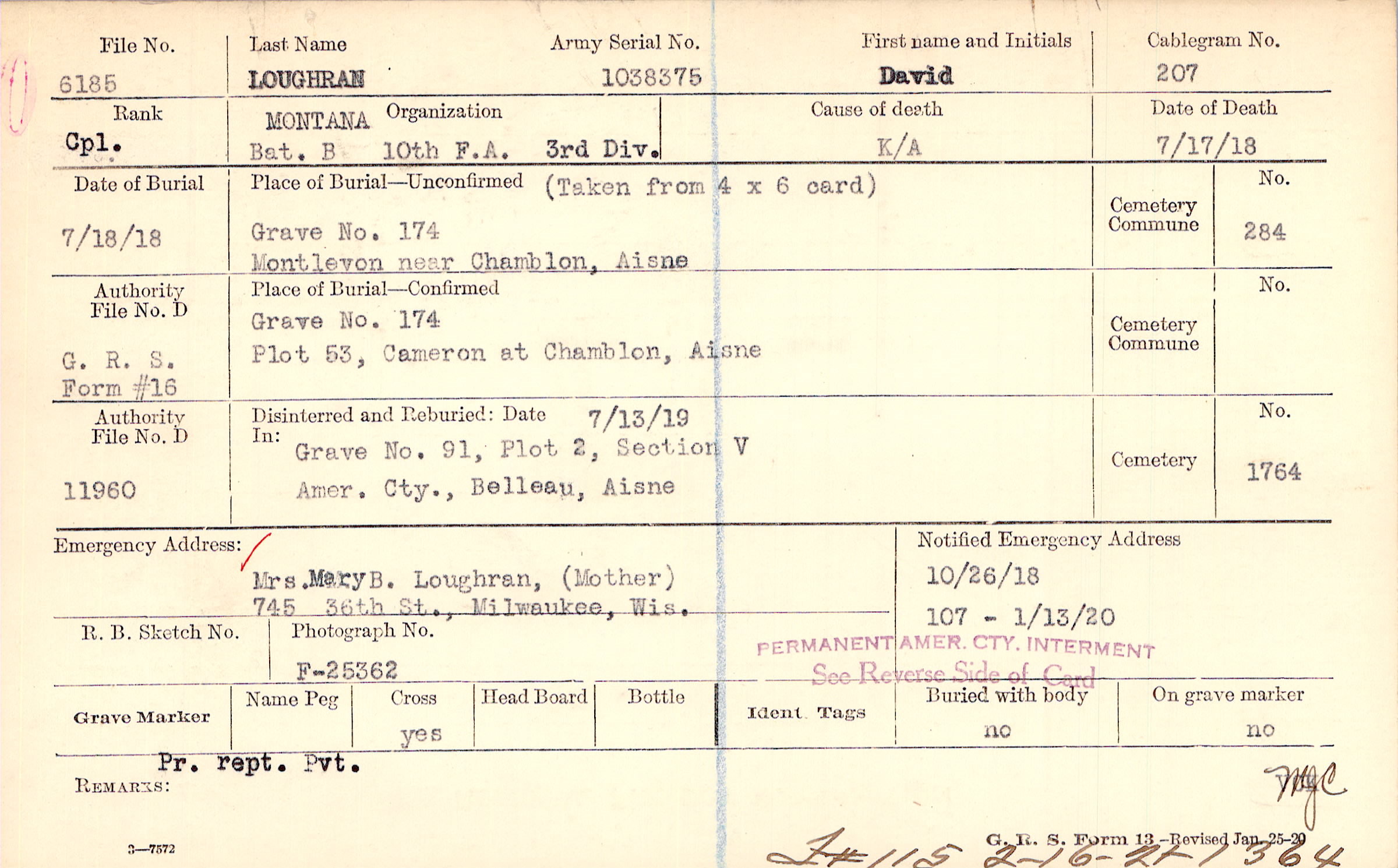 Mrs. Mary B. Loughran, (Mother), 745 36th St., Milwaukee, Wis.