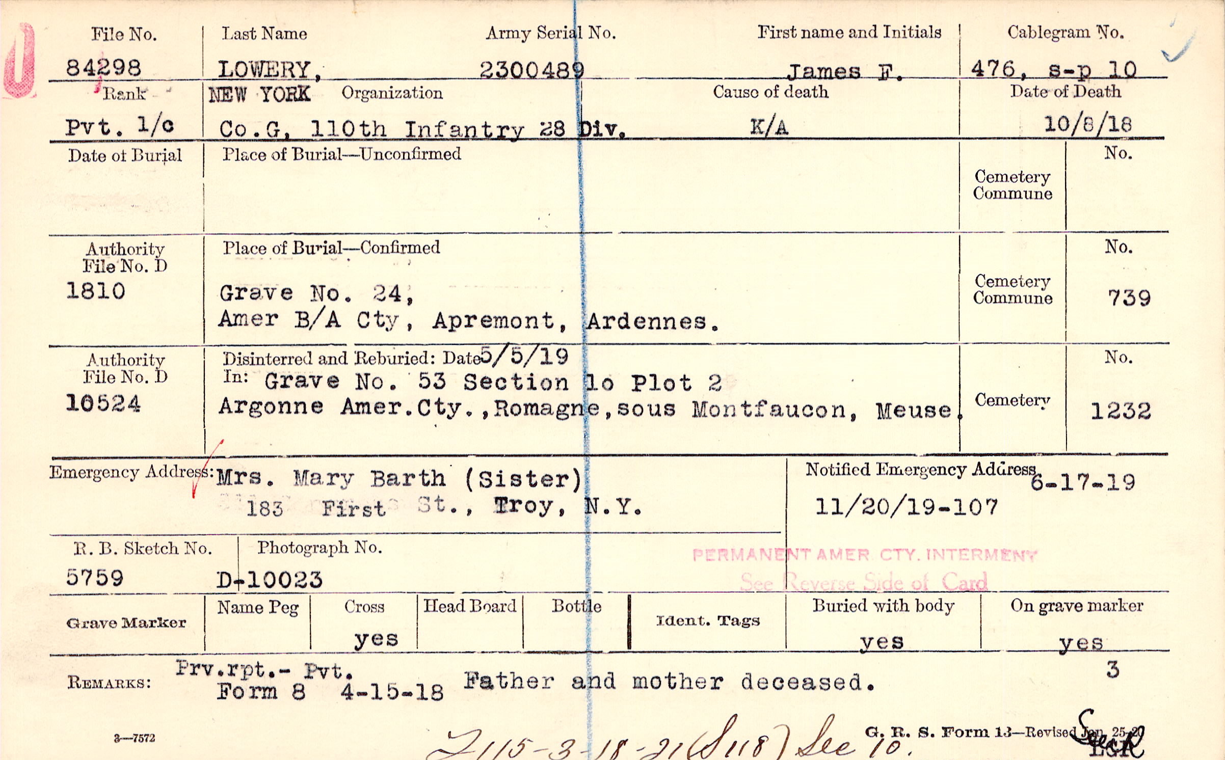 Grave 24, Amer B/A Cty, Apremont, Ardennes.
