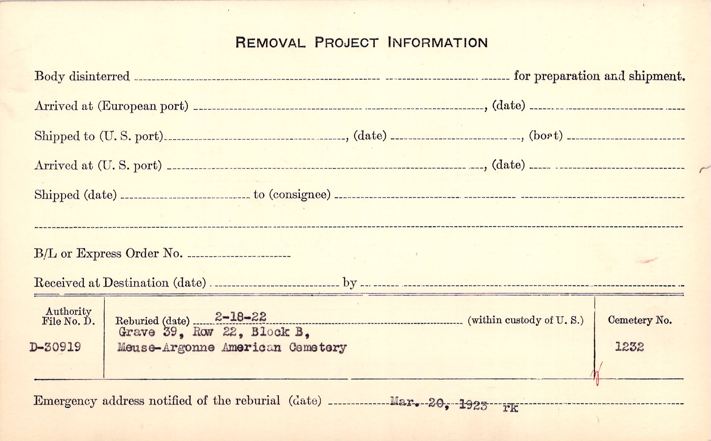 | Permanent Burial in Foreign Cemetery |