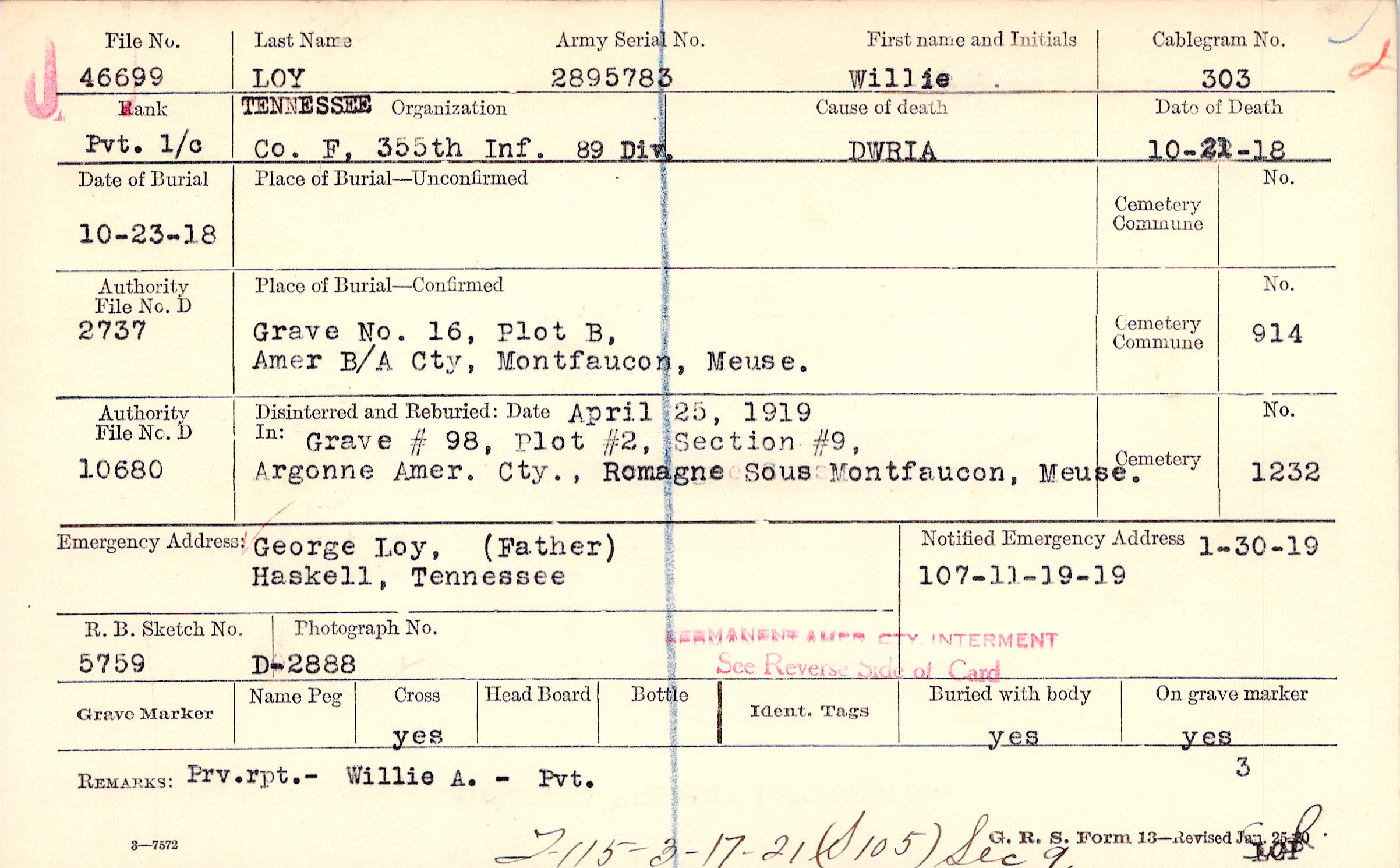 | Reburied (date): |