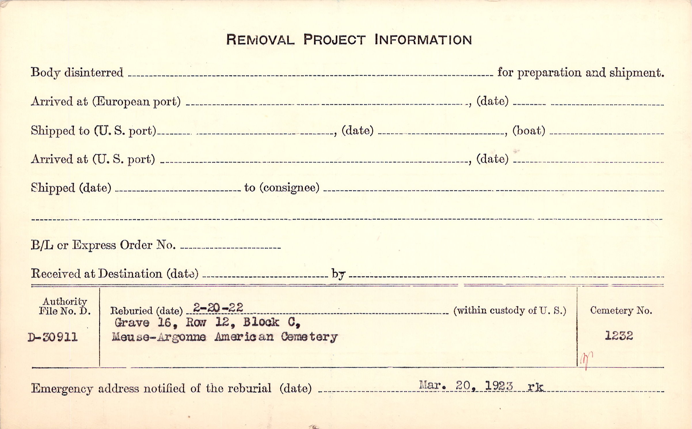 | Permanent Burial in Foreign Cemetery |