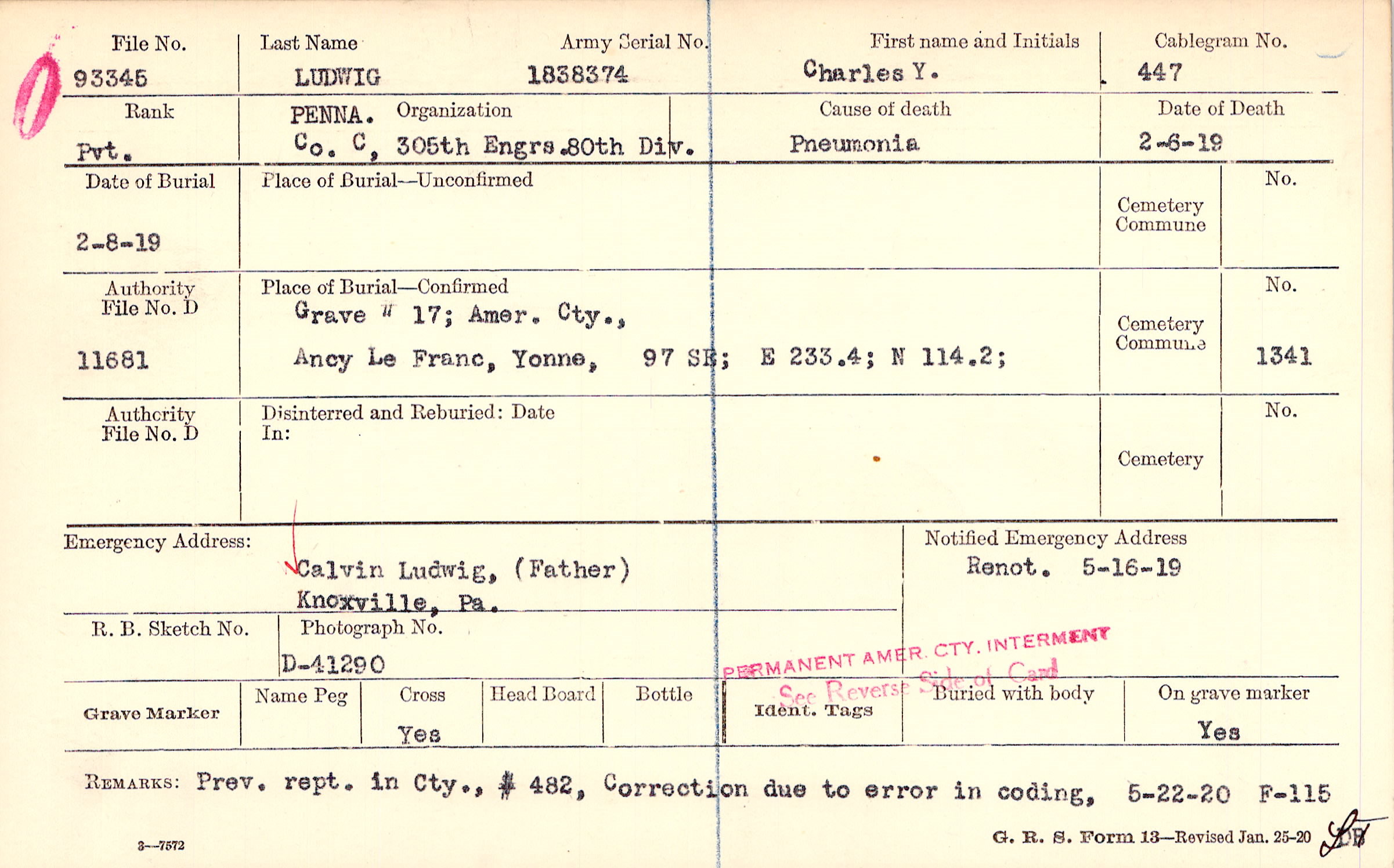 Grave # 17, Amer. Cty., Ancy Le Franc, Yonne, 97 SE
