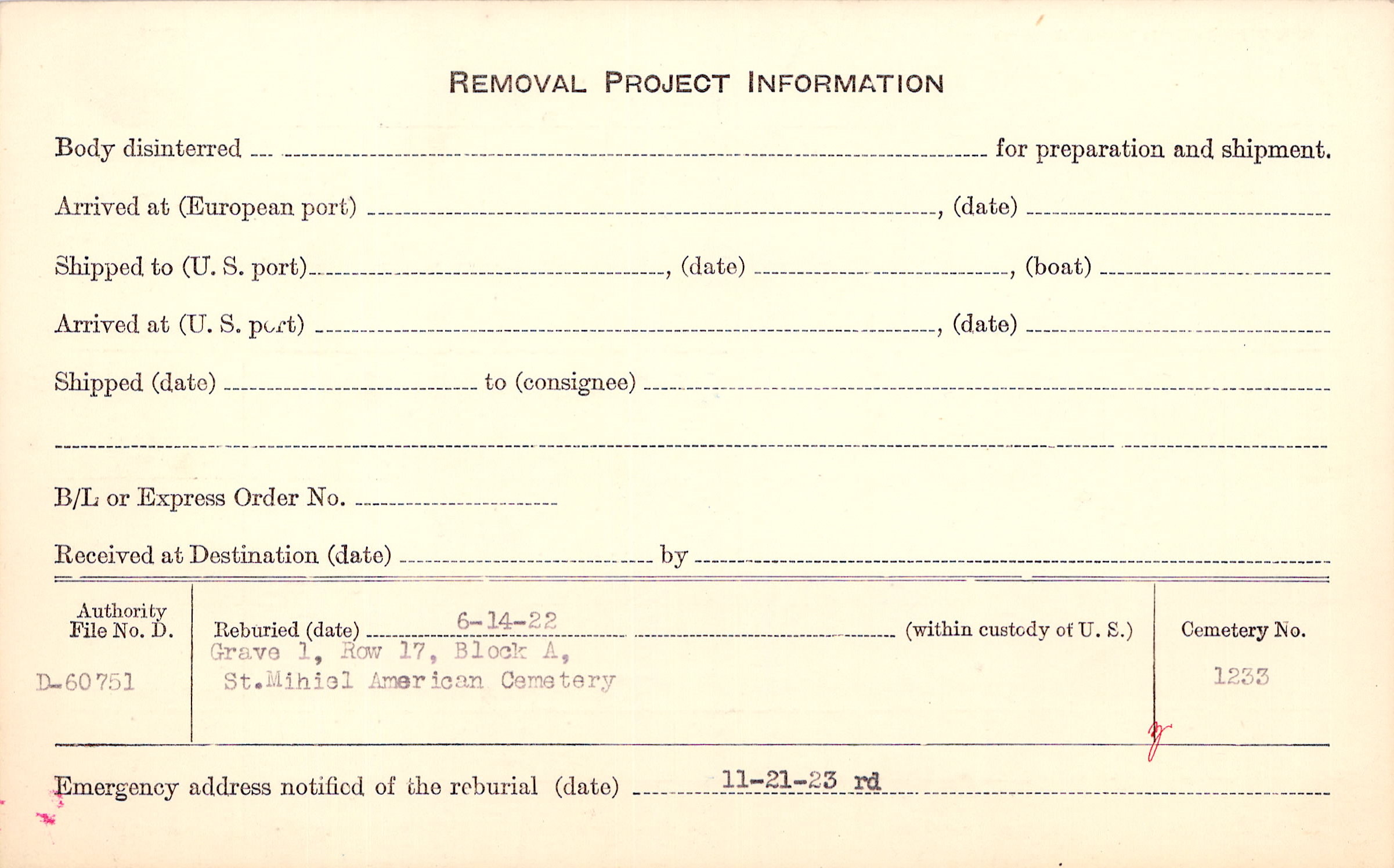 | Permanent Burial in Foreign Cemetery |