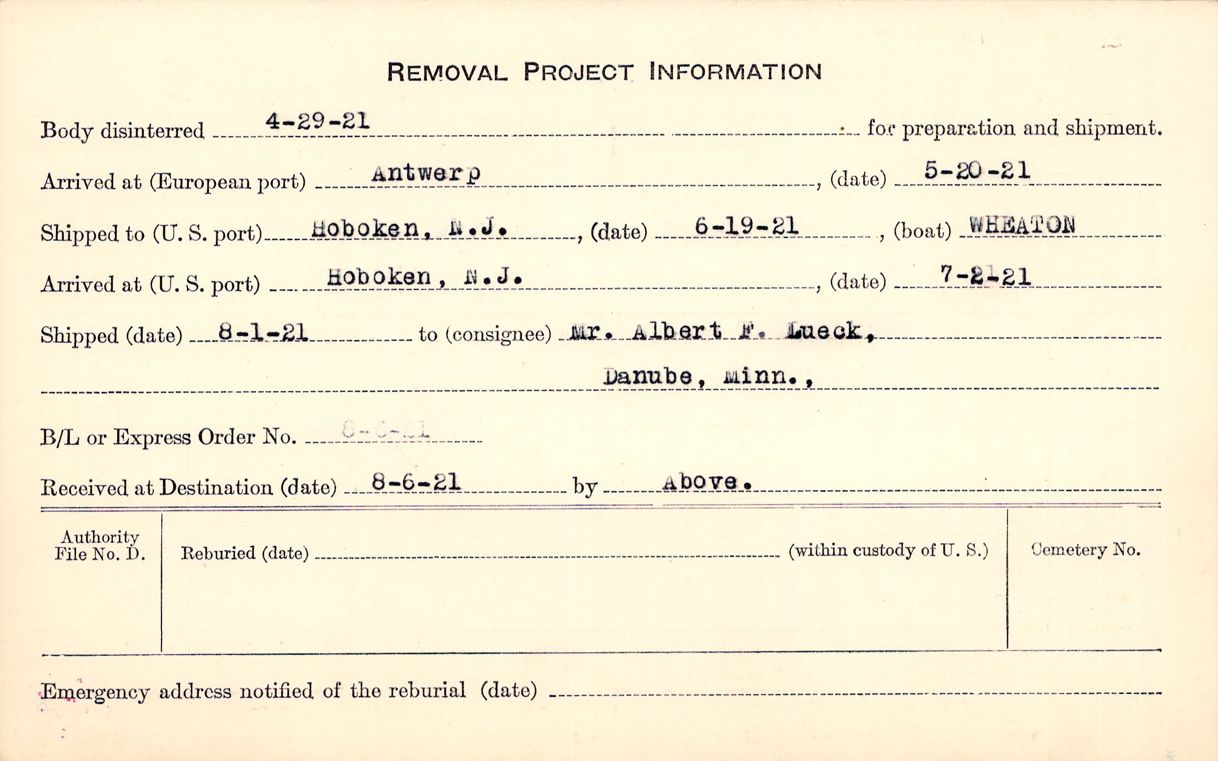 Mr. Albert F. Lueck (Brother), Danube, Minn.