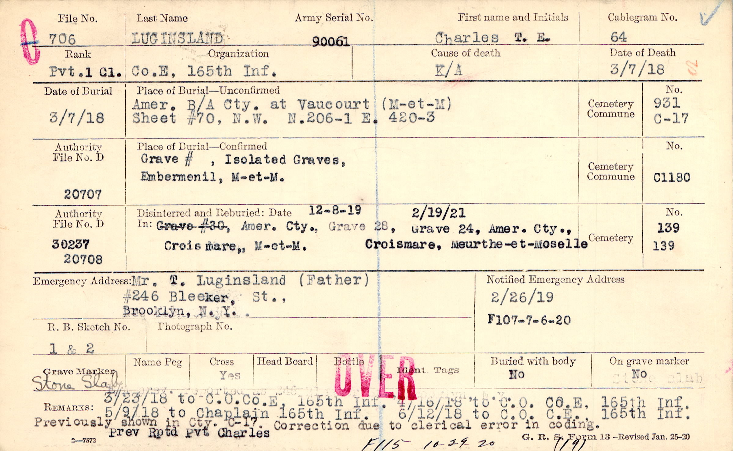 Mr. T. Luginsland (Father), #246 Bleeker St., Brooklyn, N.Y.