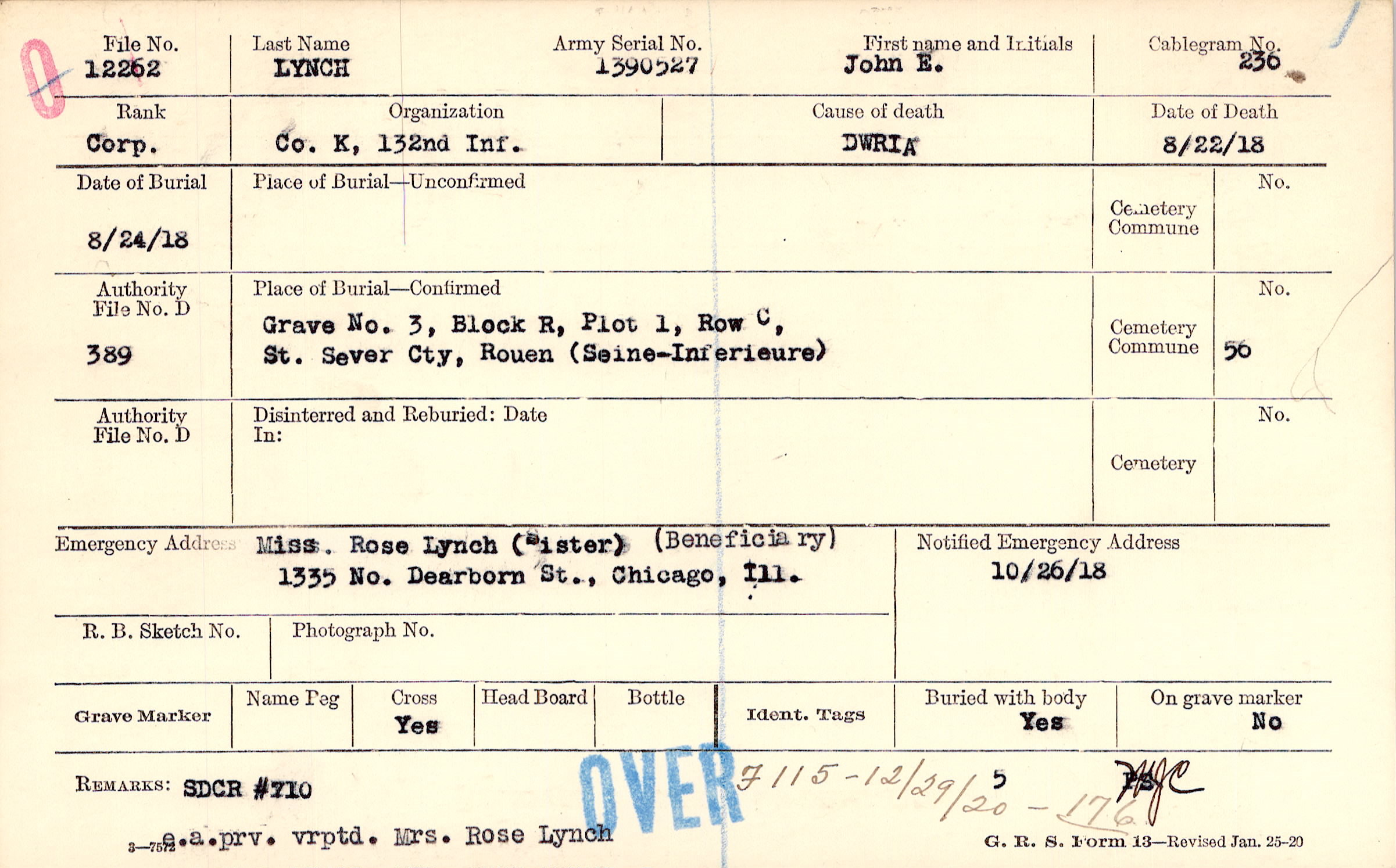 e.a. prv. vrptd. Mrs. Rose Lynch, F115 - 12/29/20 - 176, SDCR #710