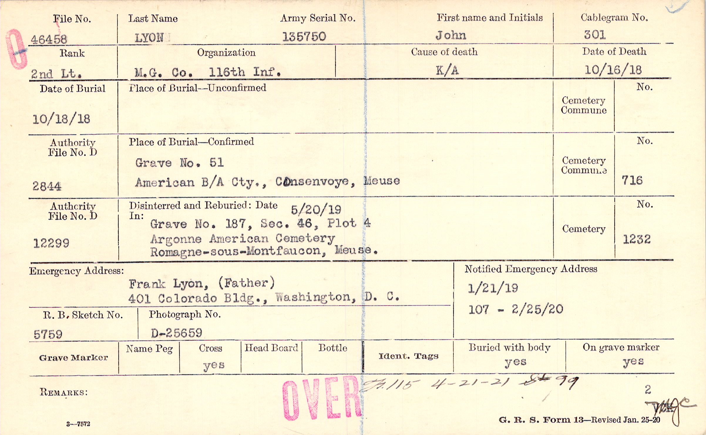 Grave 51, American B/A Cty., Consenvoye, Meuse