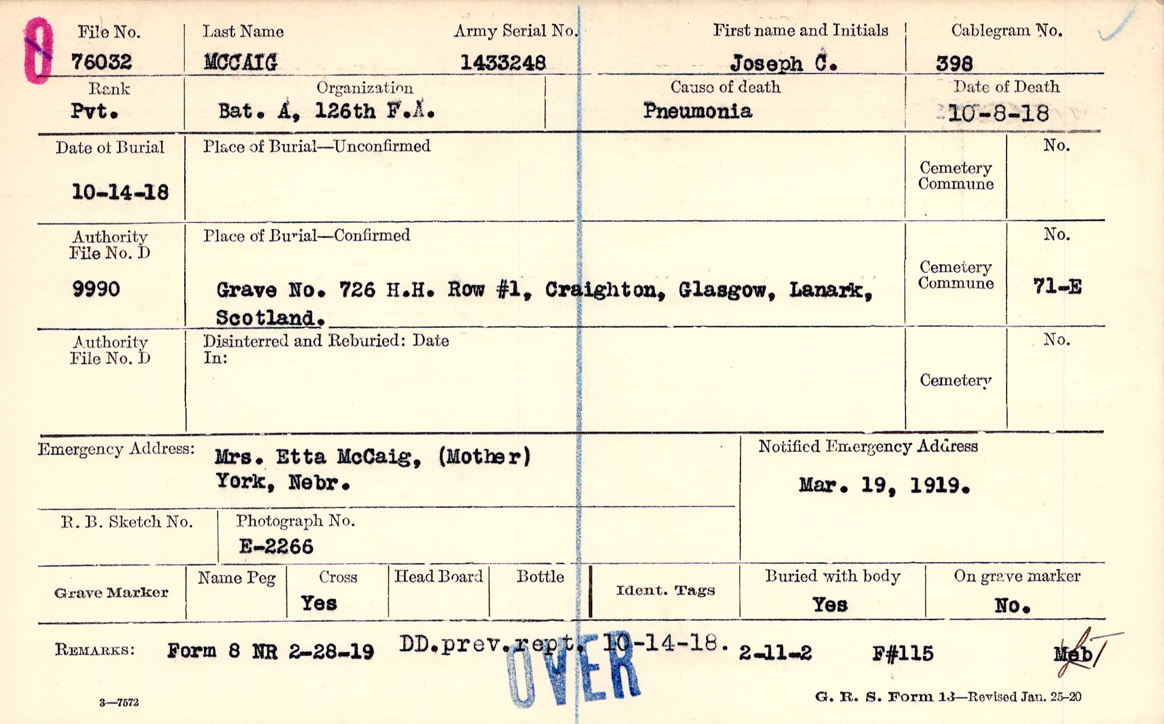 Mrs. Etta McCaig, (Mother), York, Nebr.