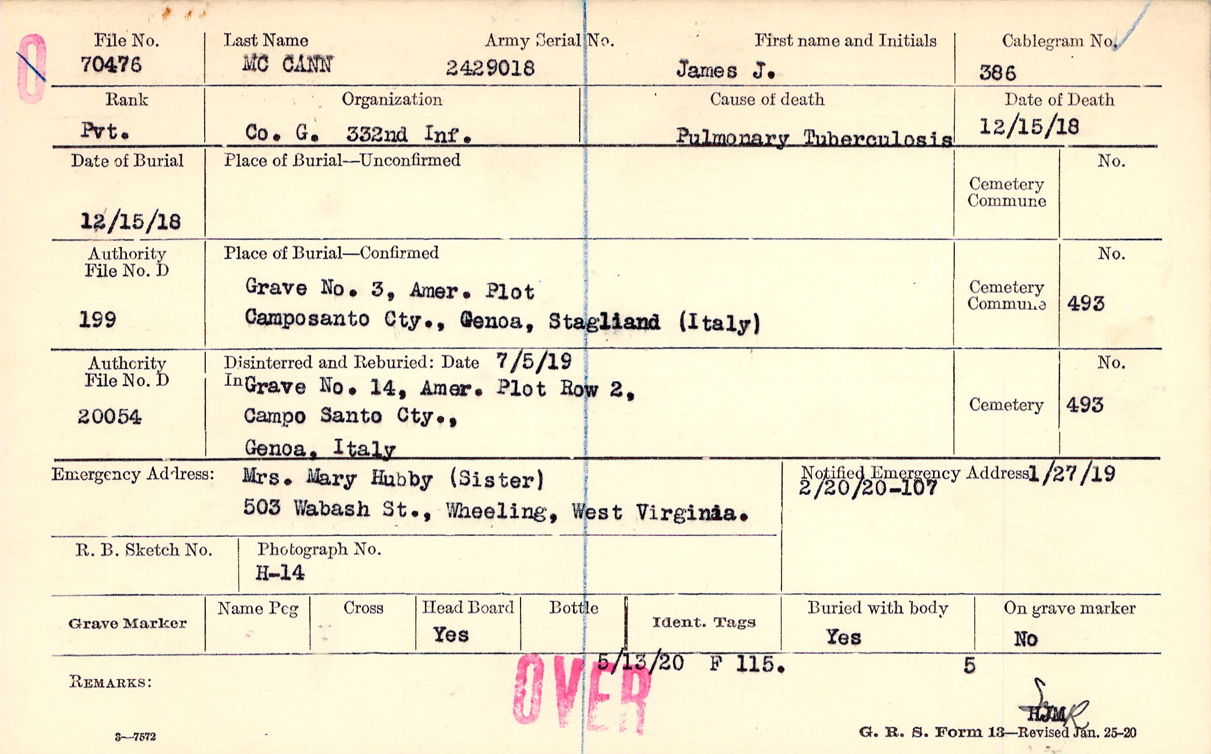 Grave 3, Amer. Plot, Camposanto Cty., Genoa, Stagliand, Italy