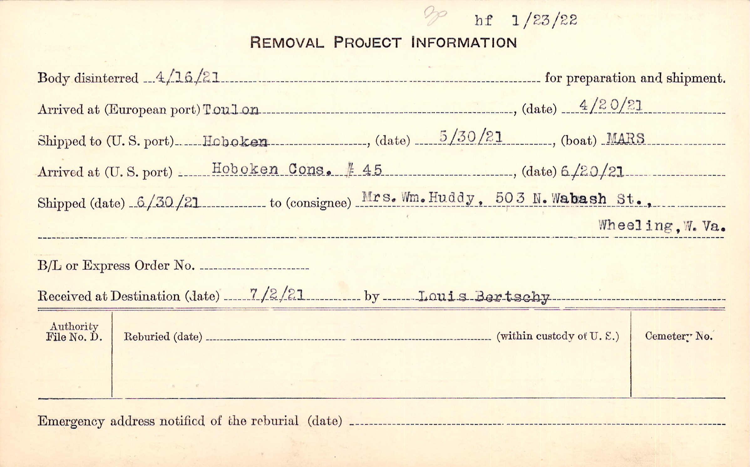 to Mrs. Wm. Huddy, 503 N. Wabash St., Wheeling, W. Va.
