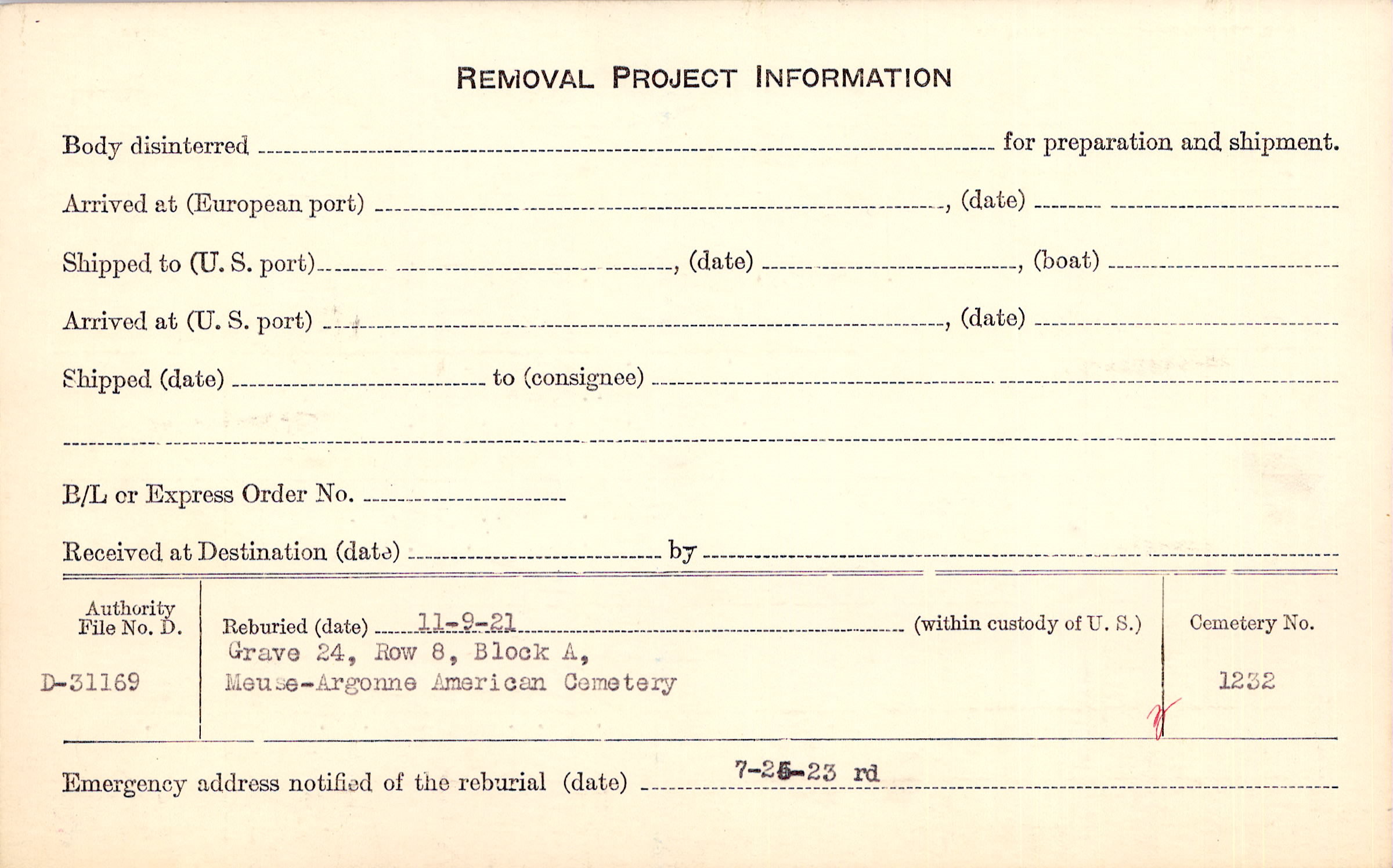 | Permanent Burial in Foreign Cemetery |