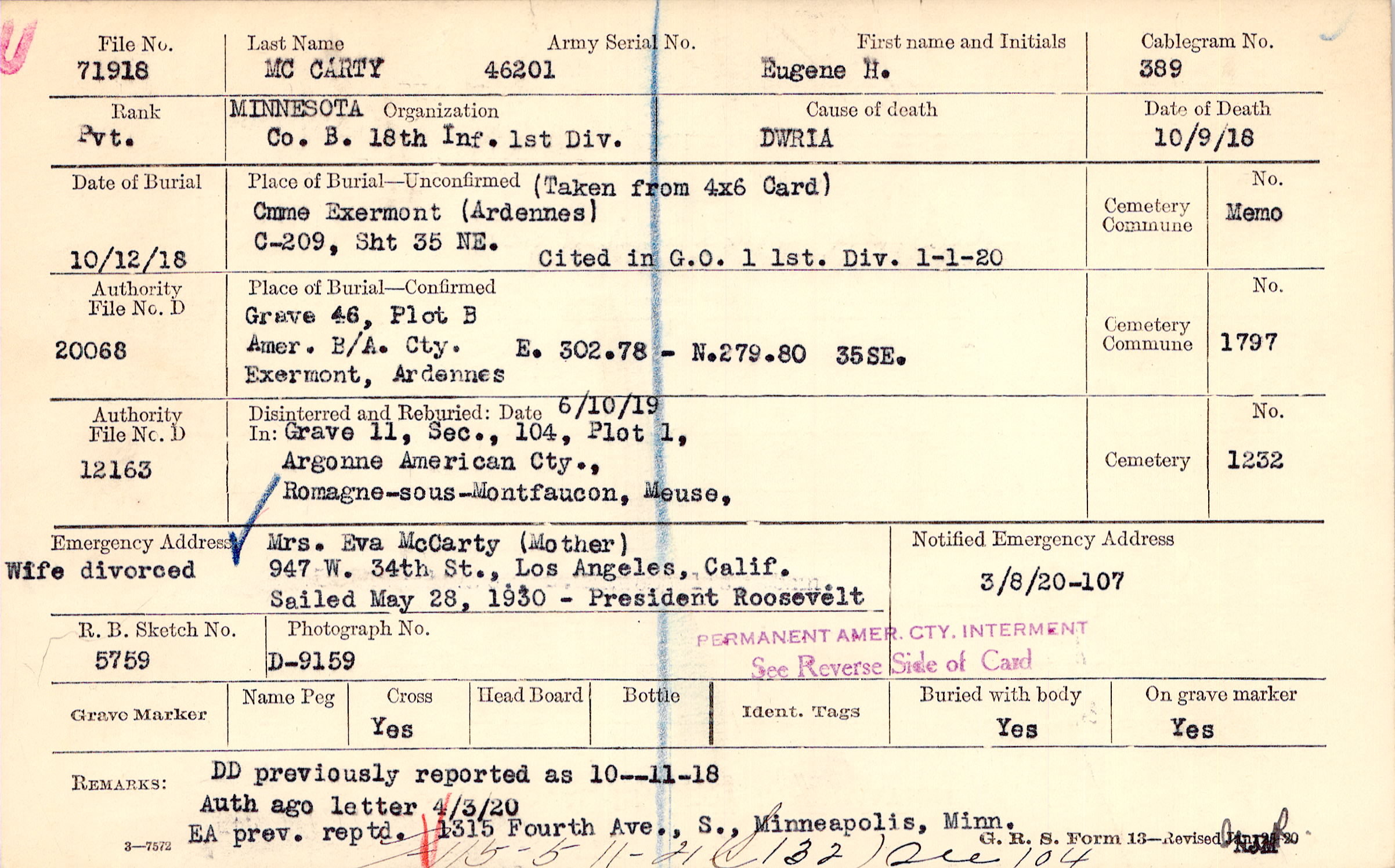 Grave 46, Plot B, Amer. B/A. Cty., Exermont, Ardennes, 35SE