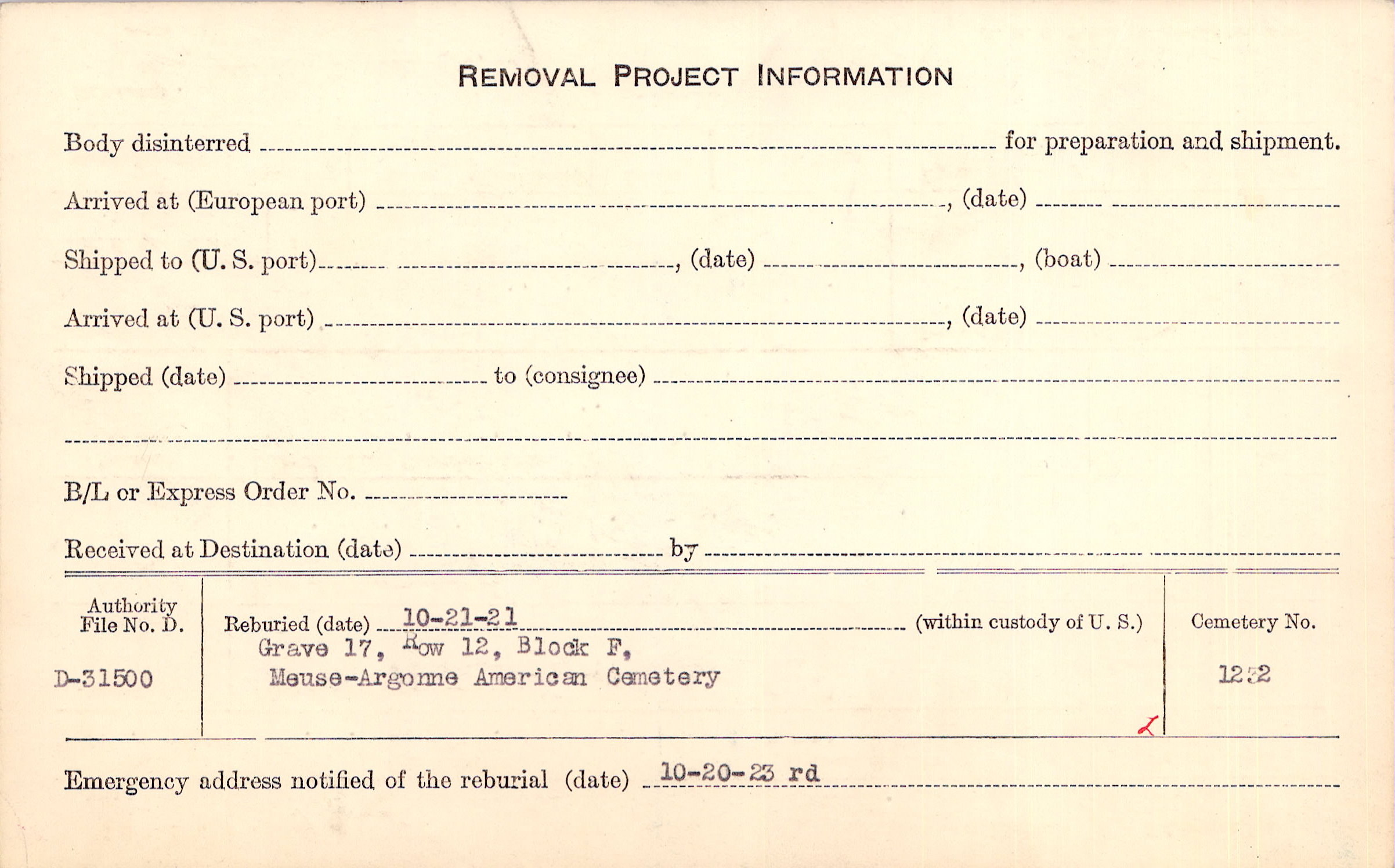 Grave 11, Section 104, Plot 1, Argonne American Cemetery, Romagne-sous-Montfaucon, Meuse