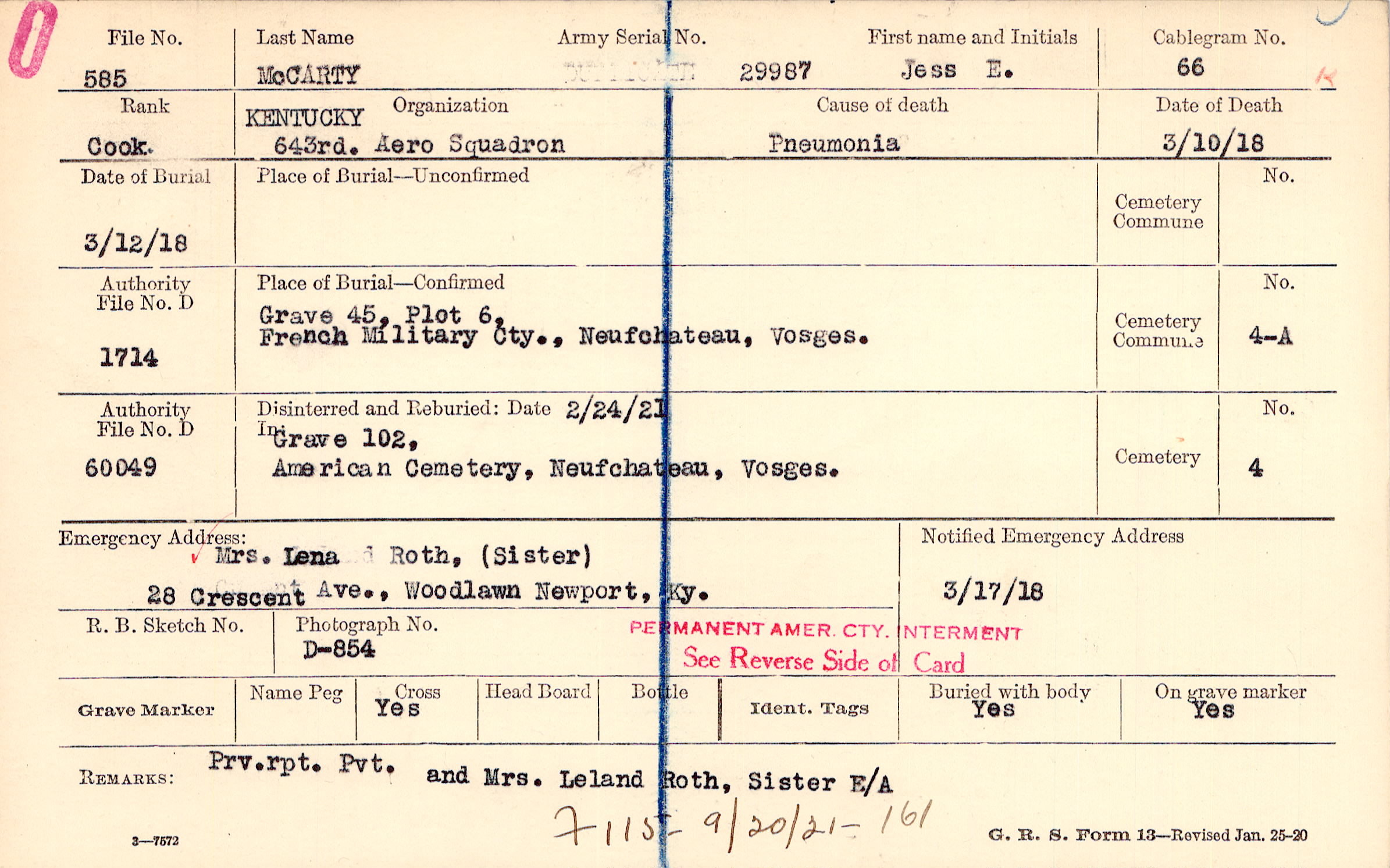 Grave 45, Plot 6, French Military Cty., Neufchateau, Vosges.