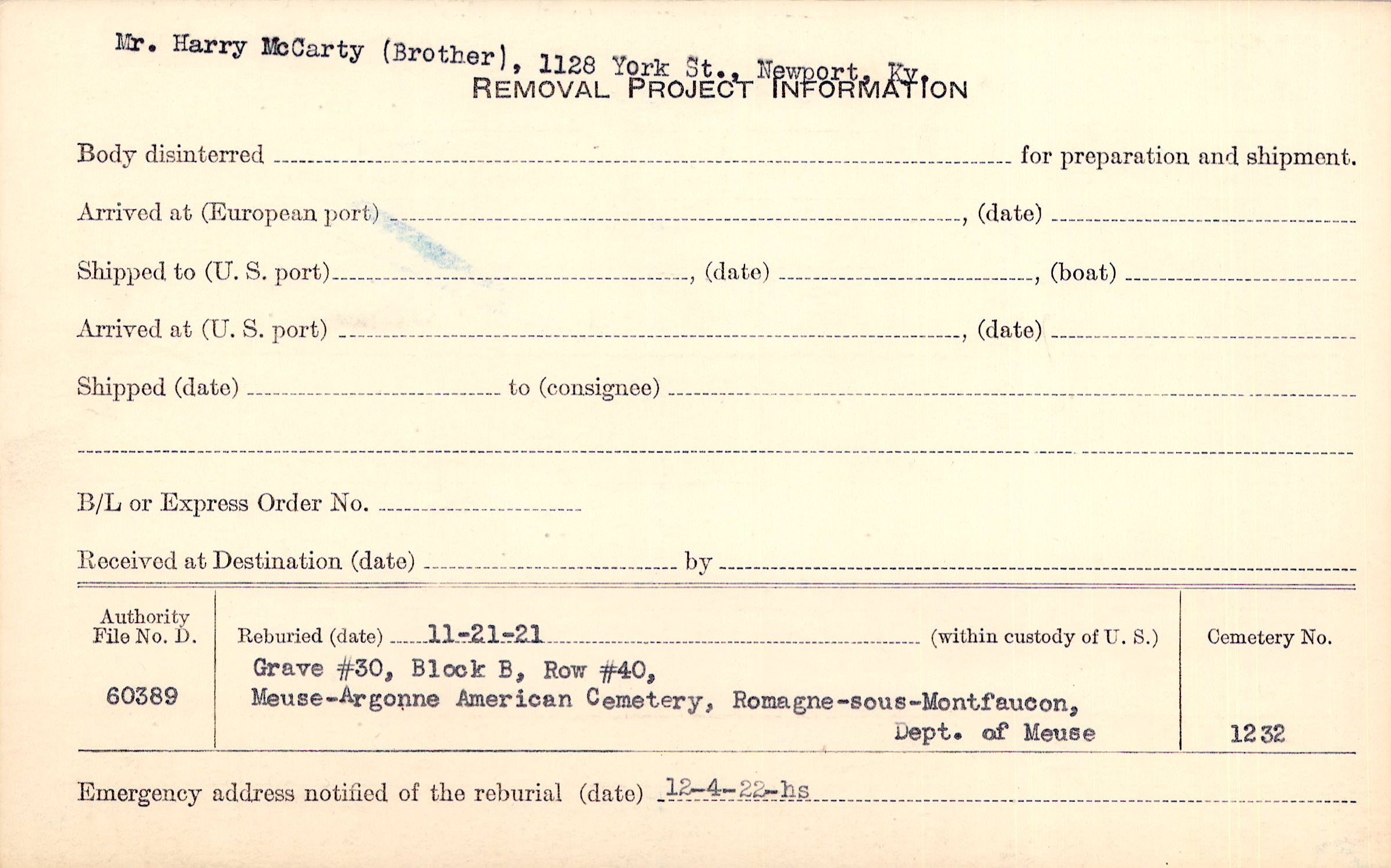 Mrs. Lena Roth, (Sister), 28 Crescent Ave., Woodlawn Newport, Ky.