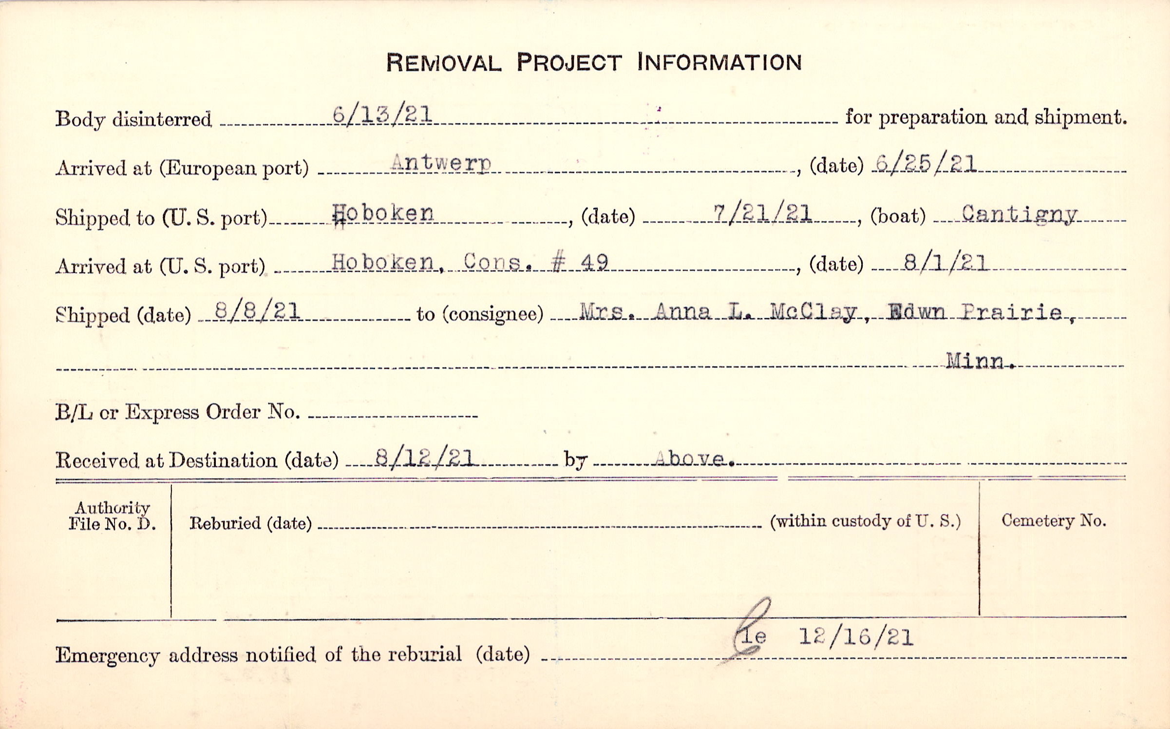 to Mrs. Anna L. McClay, Edwn Prairie, Minn.