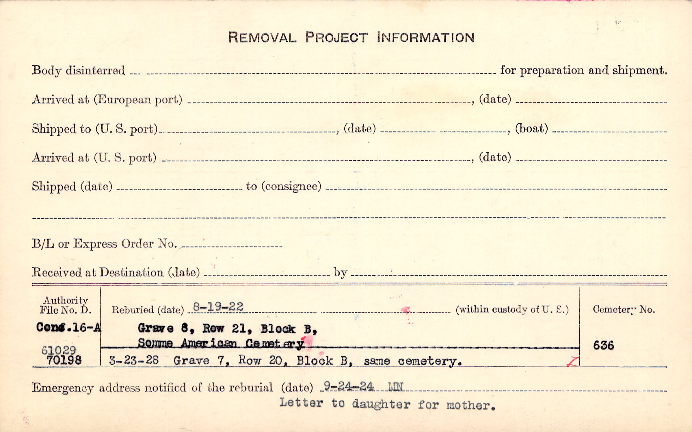 Prior Burial in Foreign Cemetery |