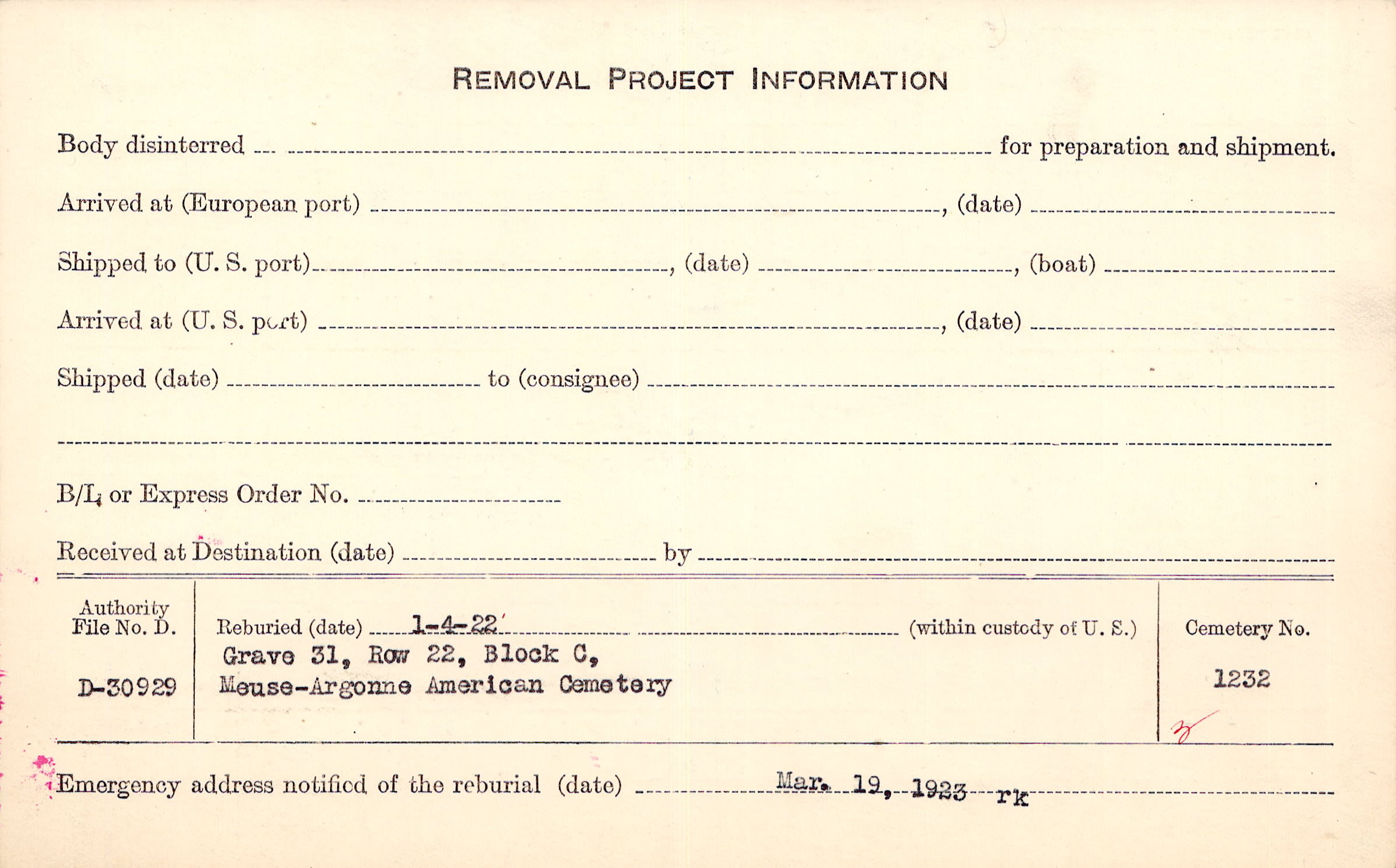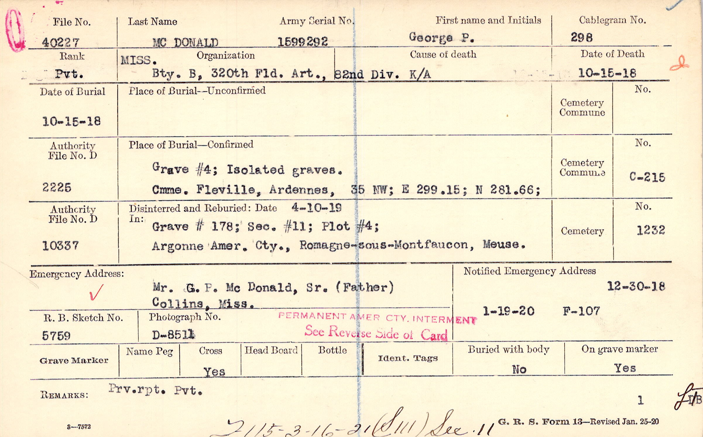 Grave 178, Section 11, Plot 4, Argonne American Cemetery, Romagne-sous-Montfaucon, Meuse