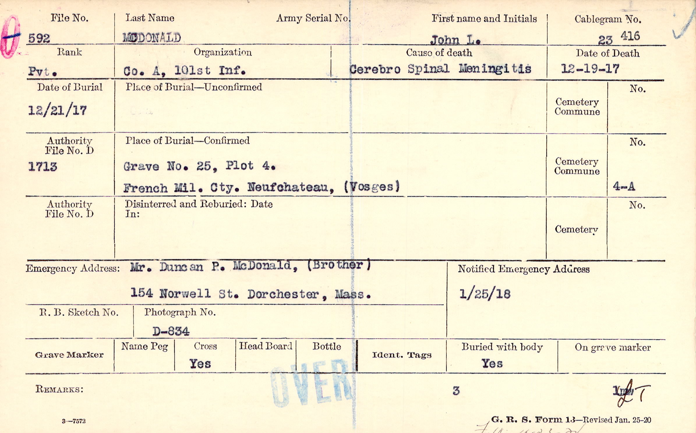 Mr. Duncan P. McDonald, (Brother), 154 Norwell St. Dorchester, Mass.
