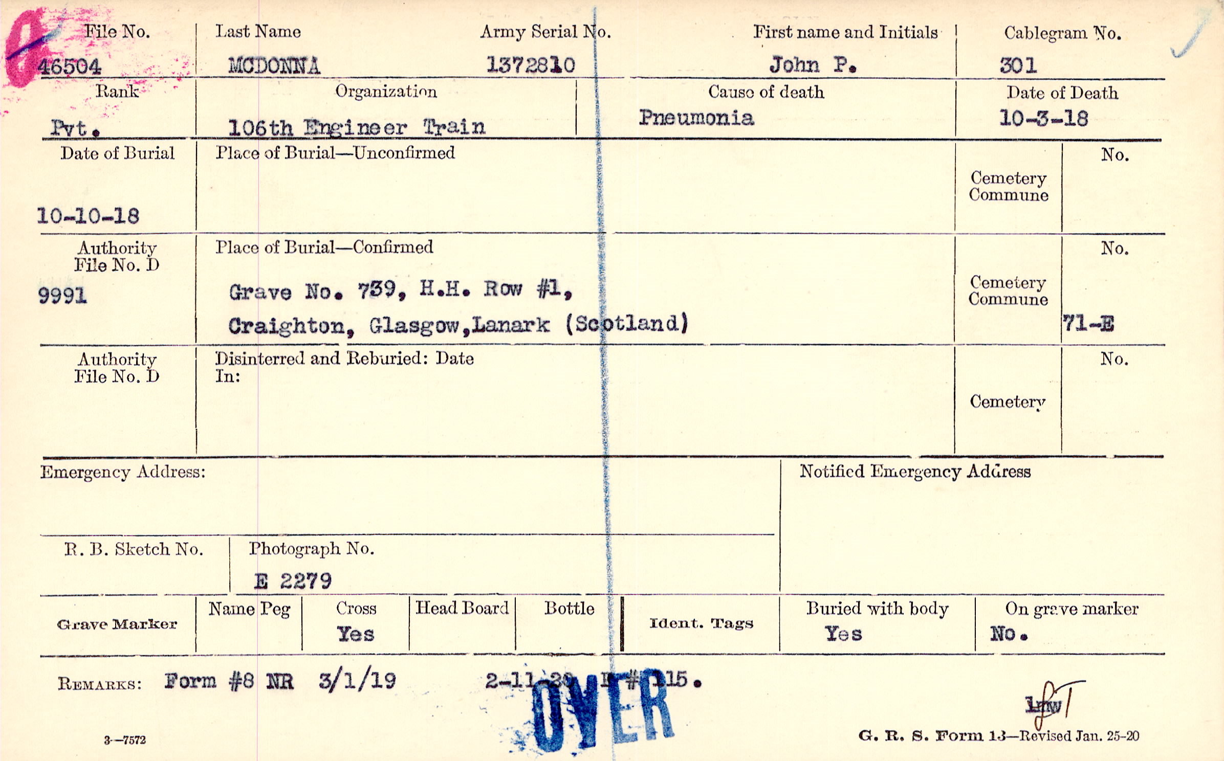 Grave 739, H.H. Row #1, Craighton, Glasgow, Lanark, Scotland