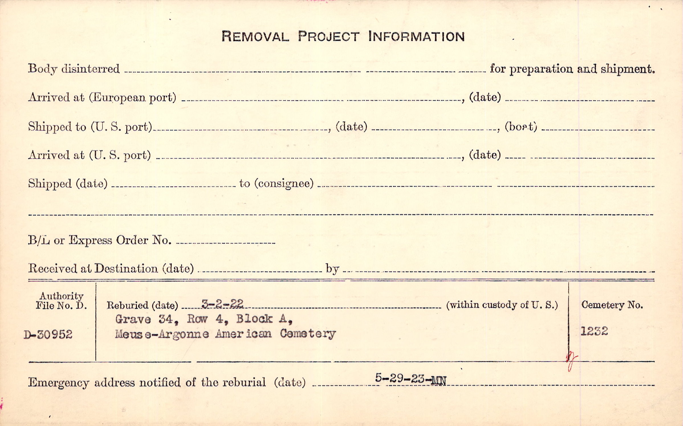 | Permanent Burial in Foreign Cemetery |
