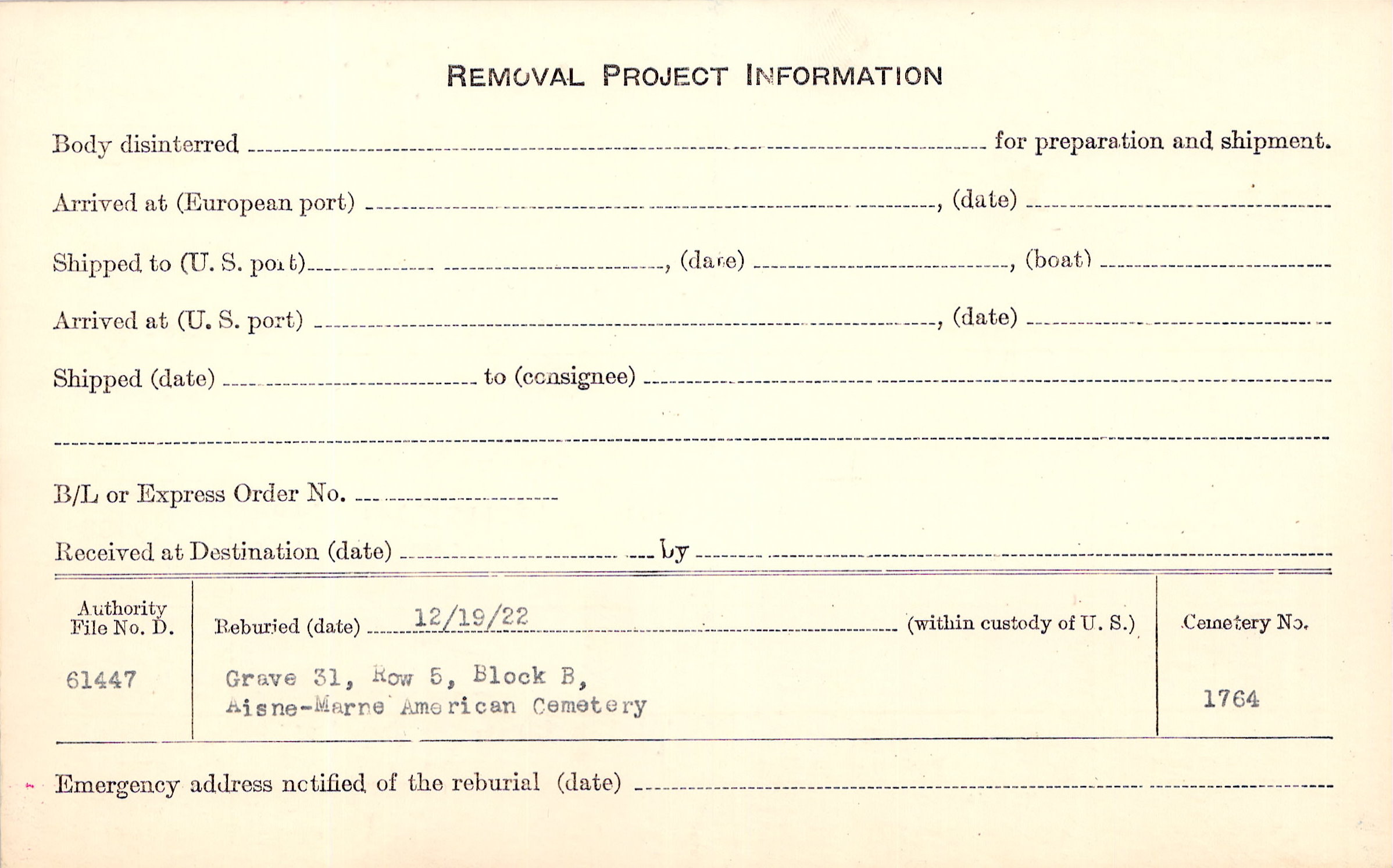 | Permanent Burial in Foreign Cemetery |