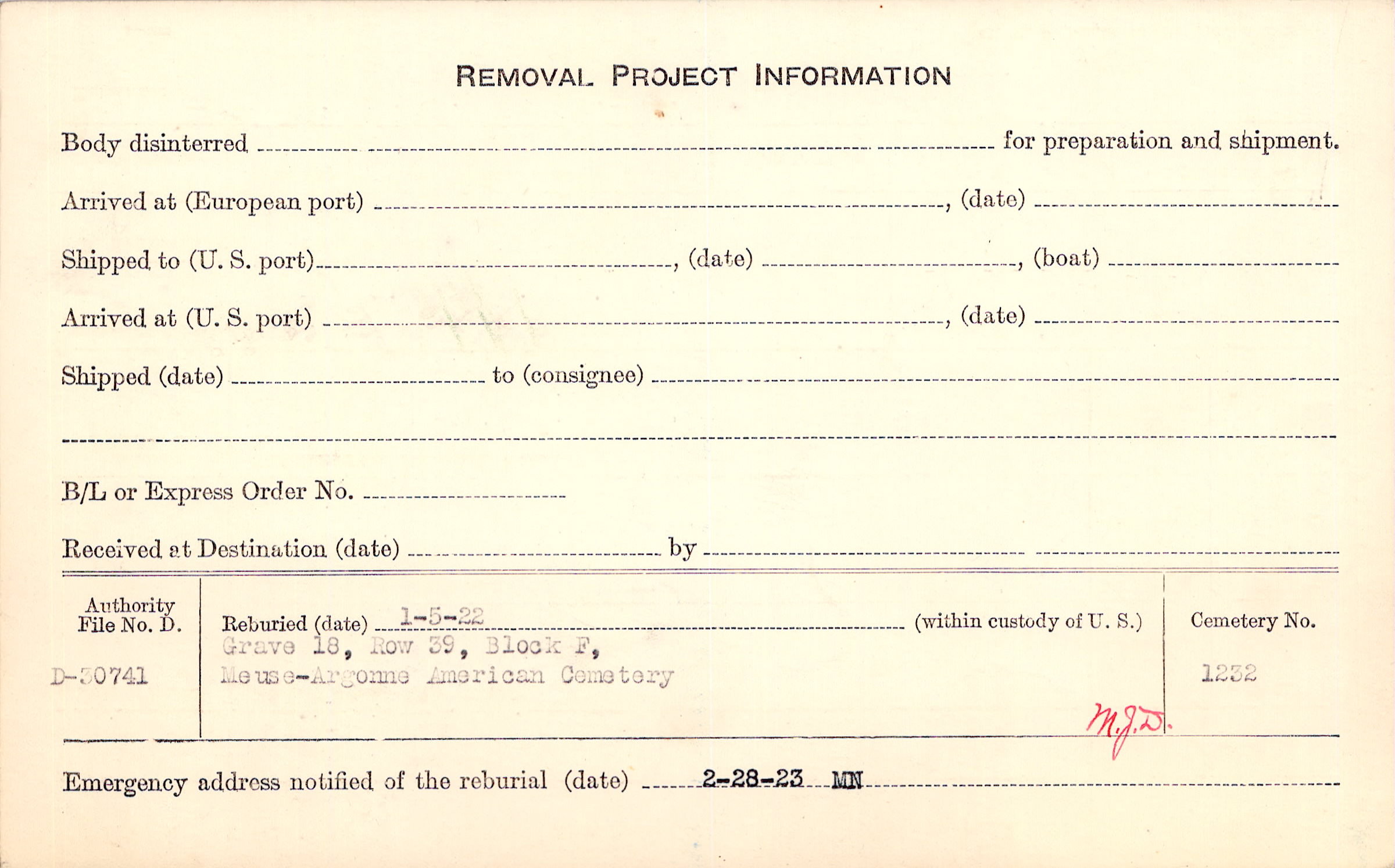 | Permanent Burial in Foreign Cemetery |
