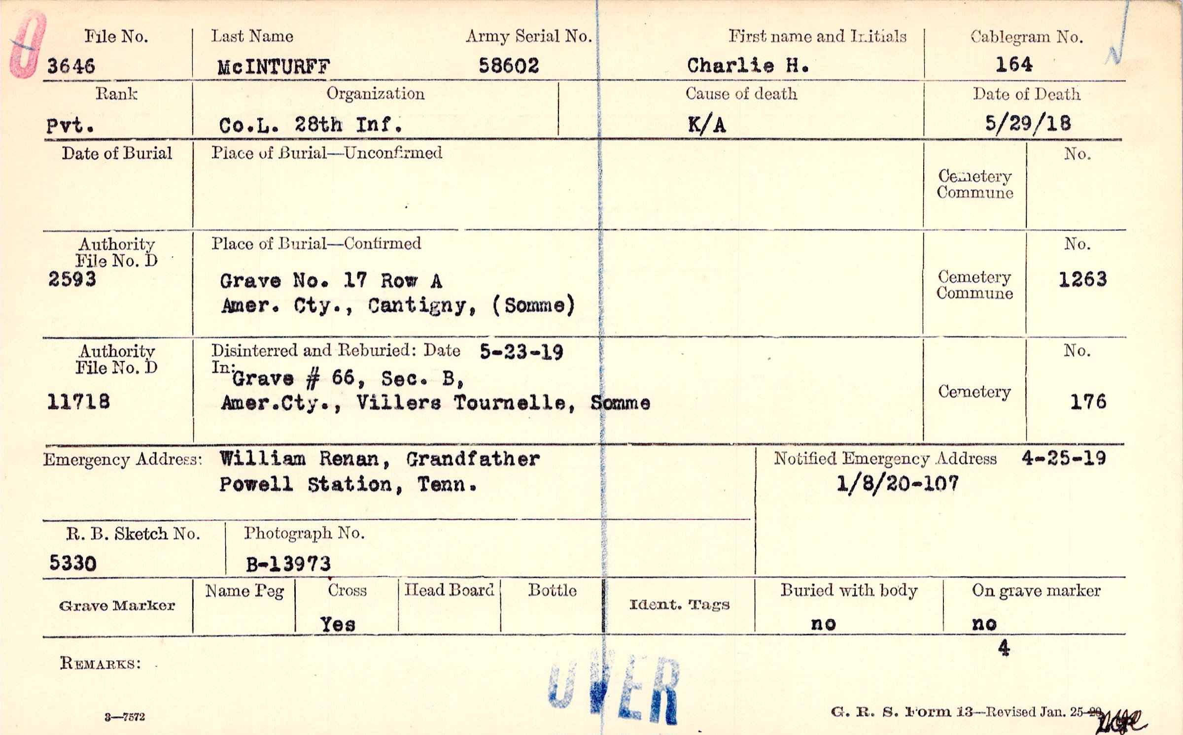 Grave 17, Row A, Amer. Cty., Cantigny, Somme