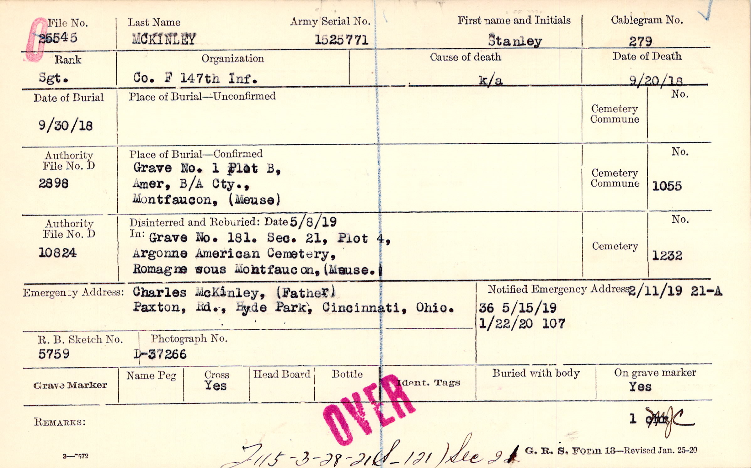 Charles McKinley, (Father), Paxton Rd., Hyde Park, Cincinnati, Ohio.