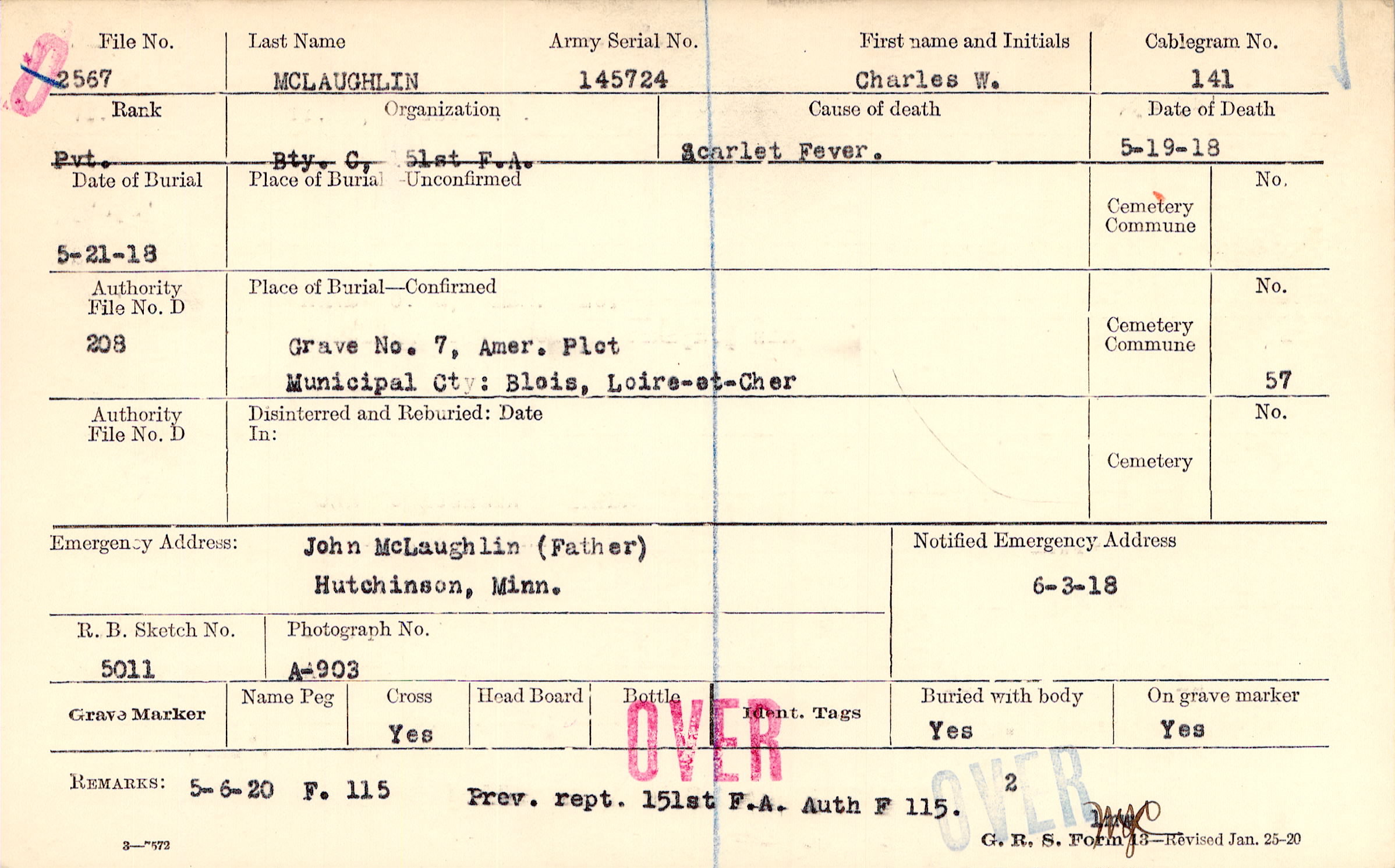 Grave 7, Amer. Plot, Municipal Cty., Blois, Loire-et-Cher.