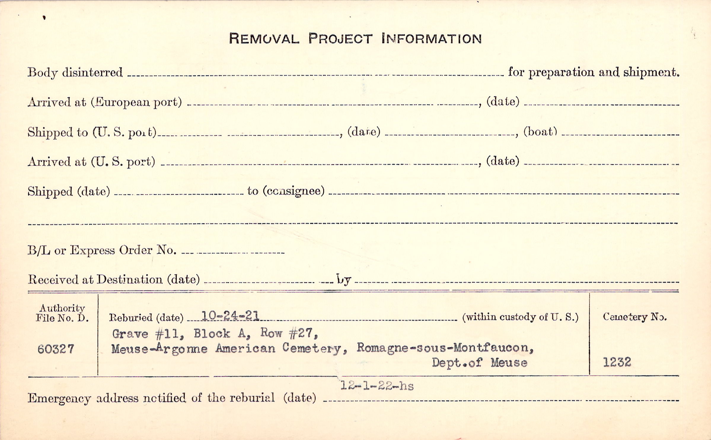 | Permanent Burial in Foreign Cemetery |