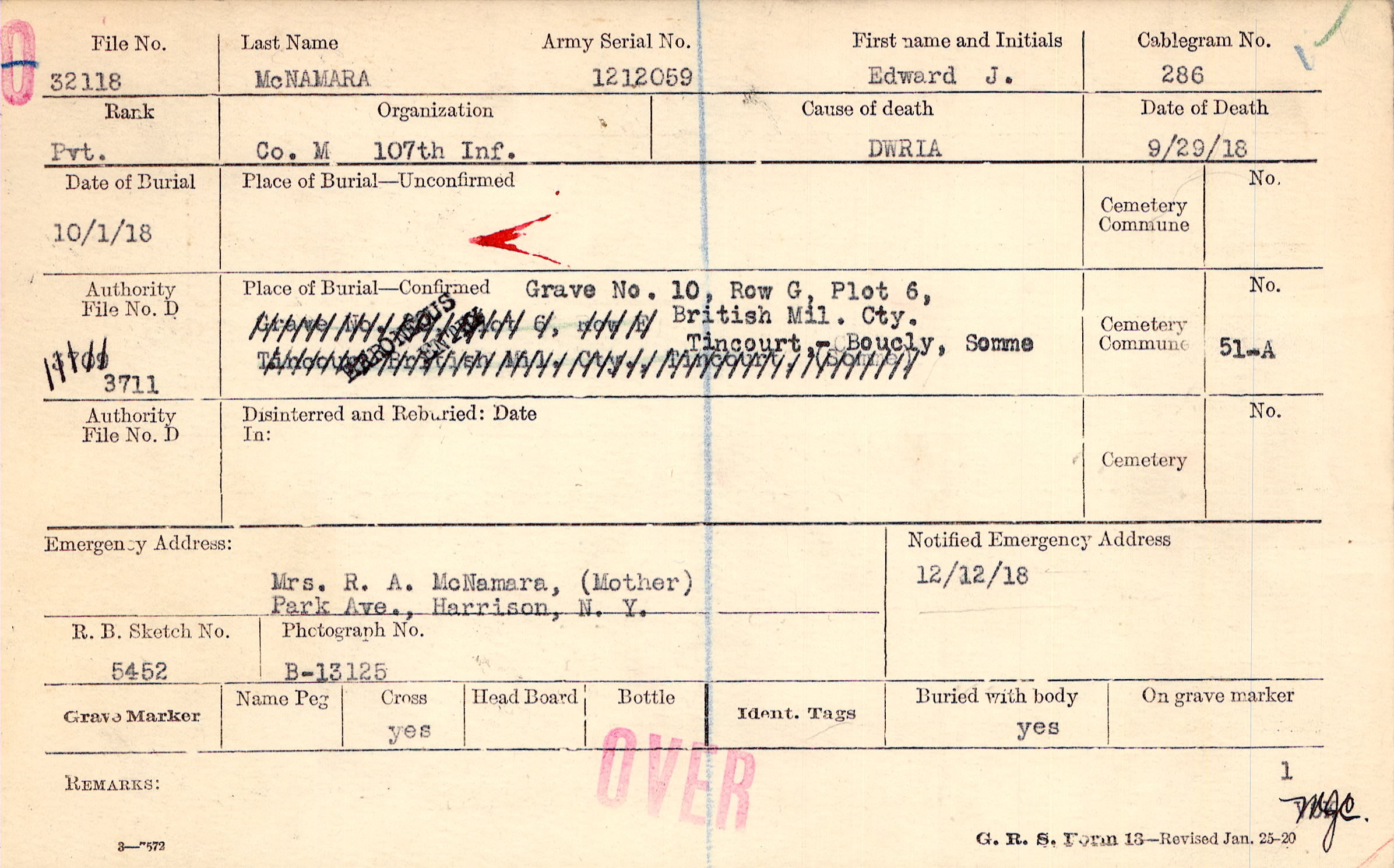 Mrs. R. A. McNamara, (Mother), Park Ave., Harrison, N. Y.