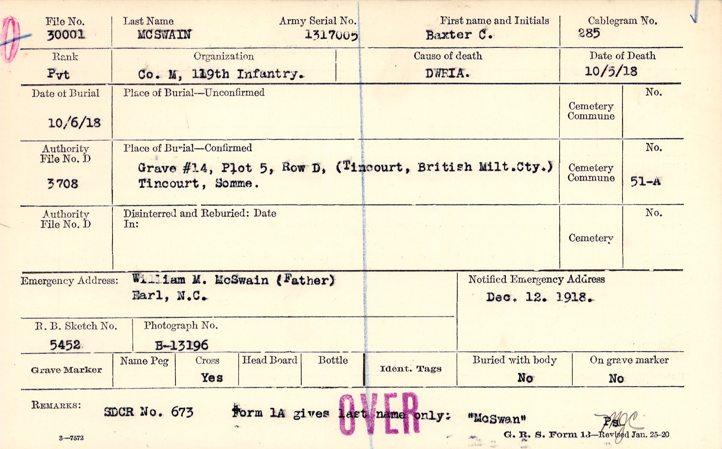 Grave #14, Plot 5, Row D, Tincourt, British Milt.Cty., Tincourt, Somme.