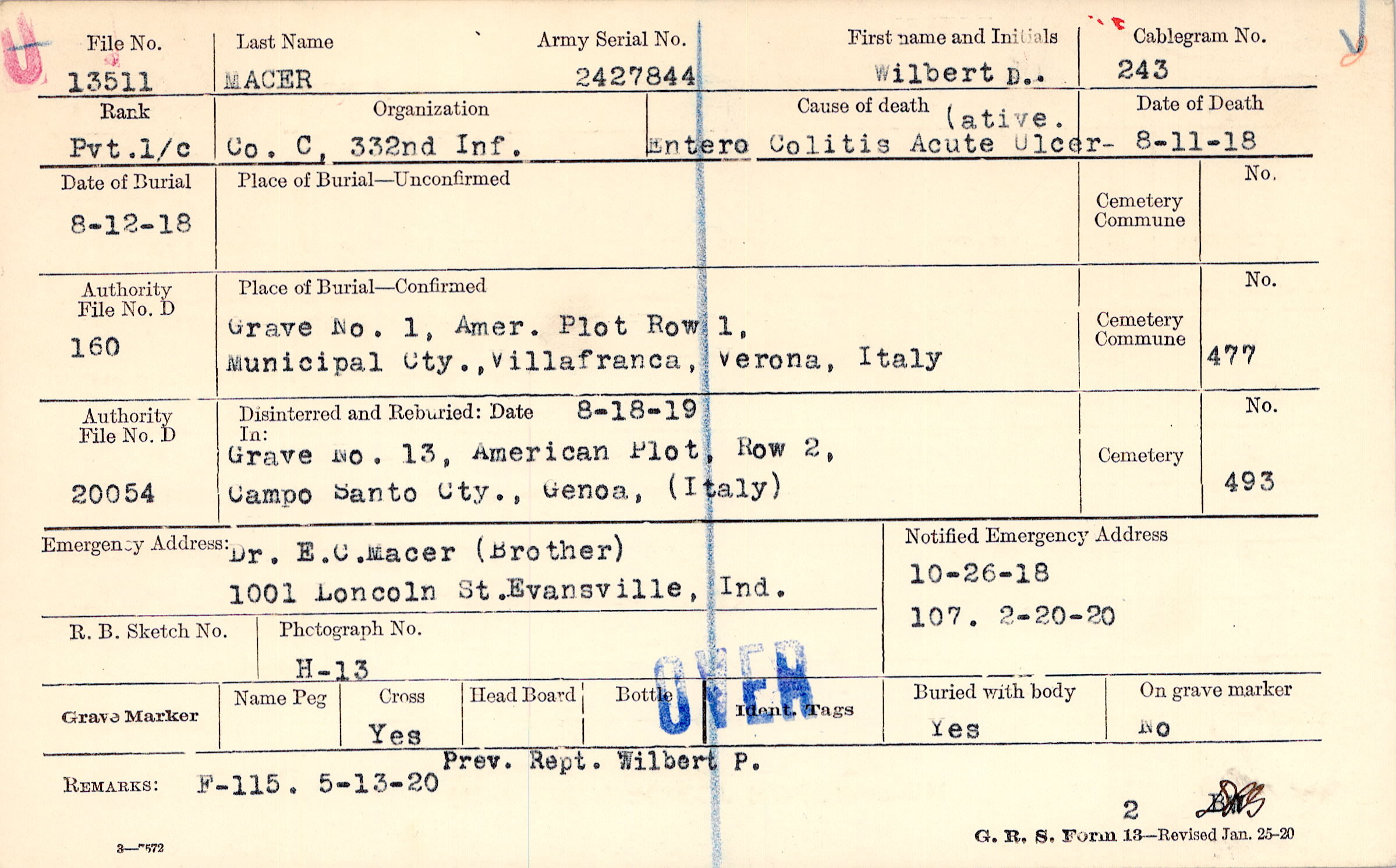 Prev. Rept. Wilbert P., F-115. 5-13-20