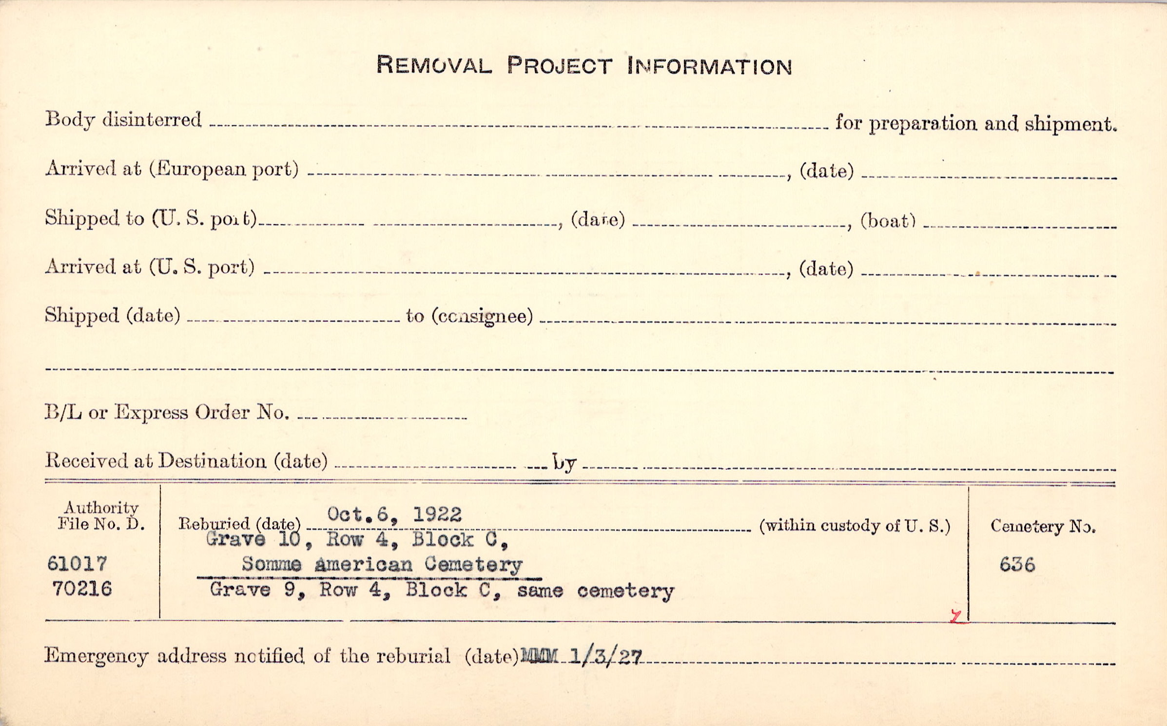 Prior Burial in Foreign Cemetery |