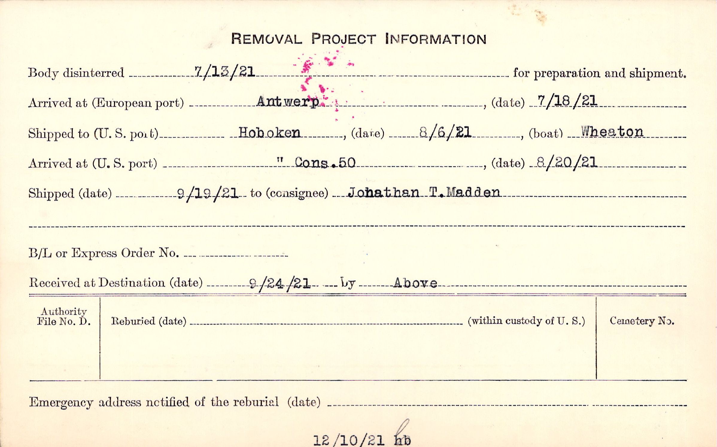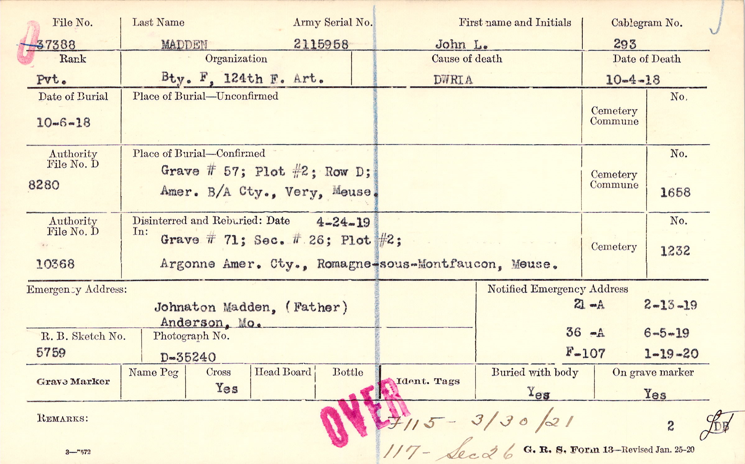 Form 21A: 2/13/1919,, Form 36: A 6/5/1919,, Form 107: 1/19/1920