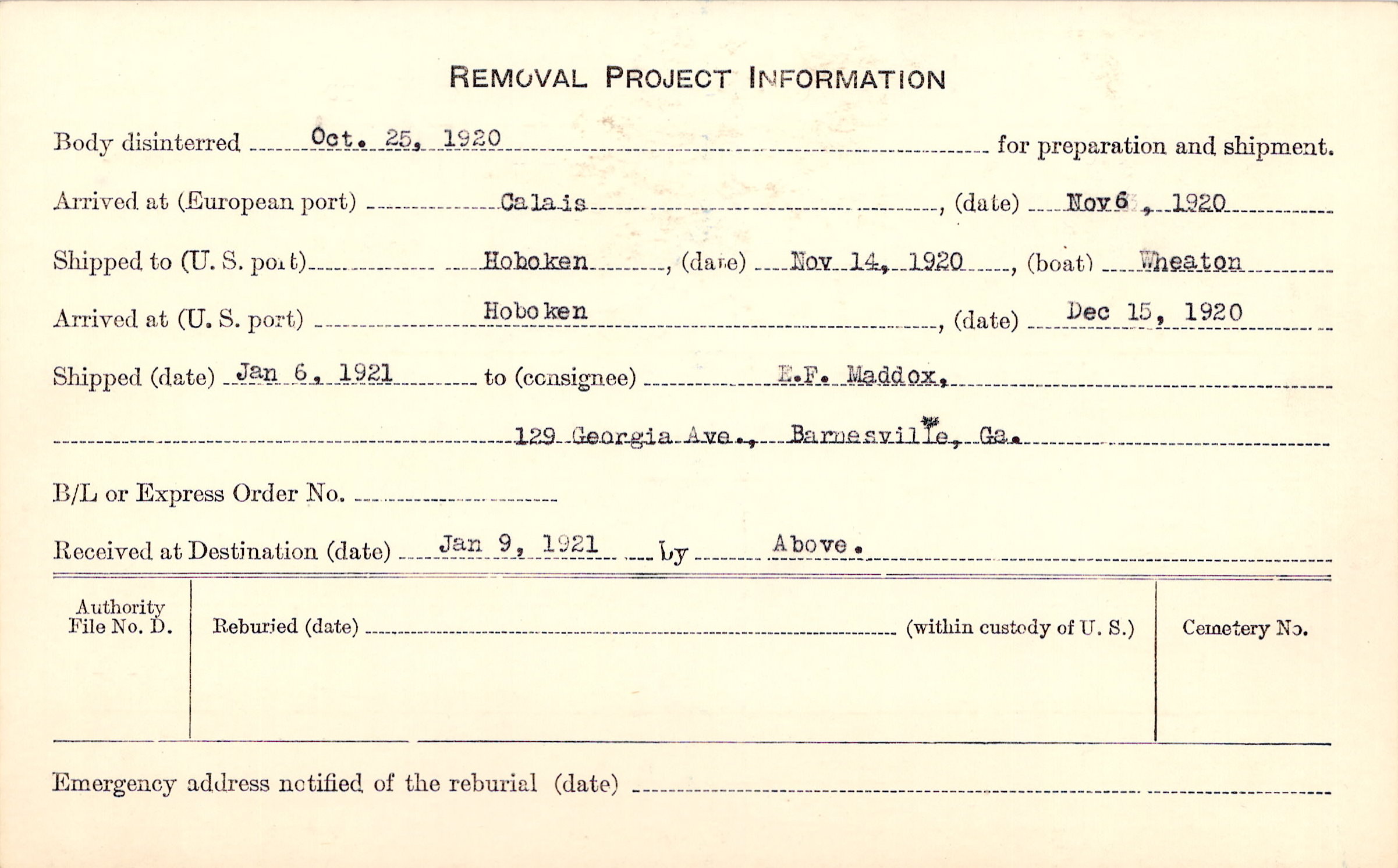 Mrs. Josephine Ingram Maddox (Mother), 129 Georgia Ave., Barnesville, Ga.
