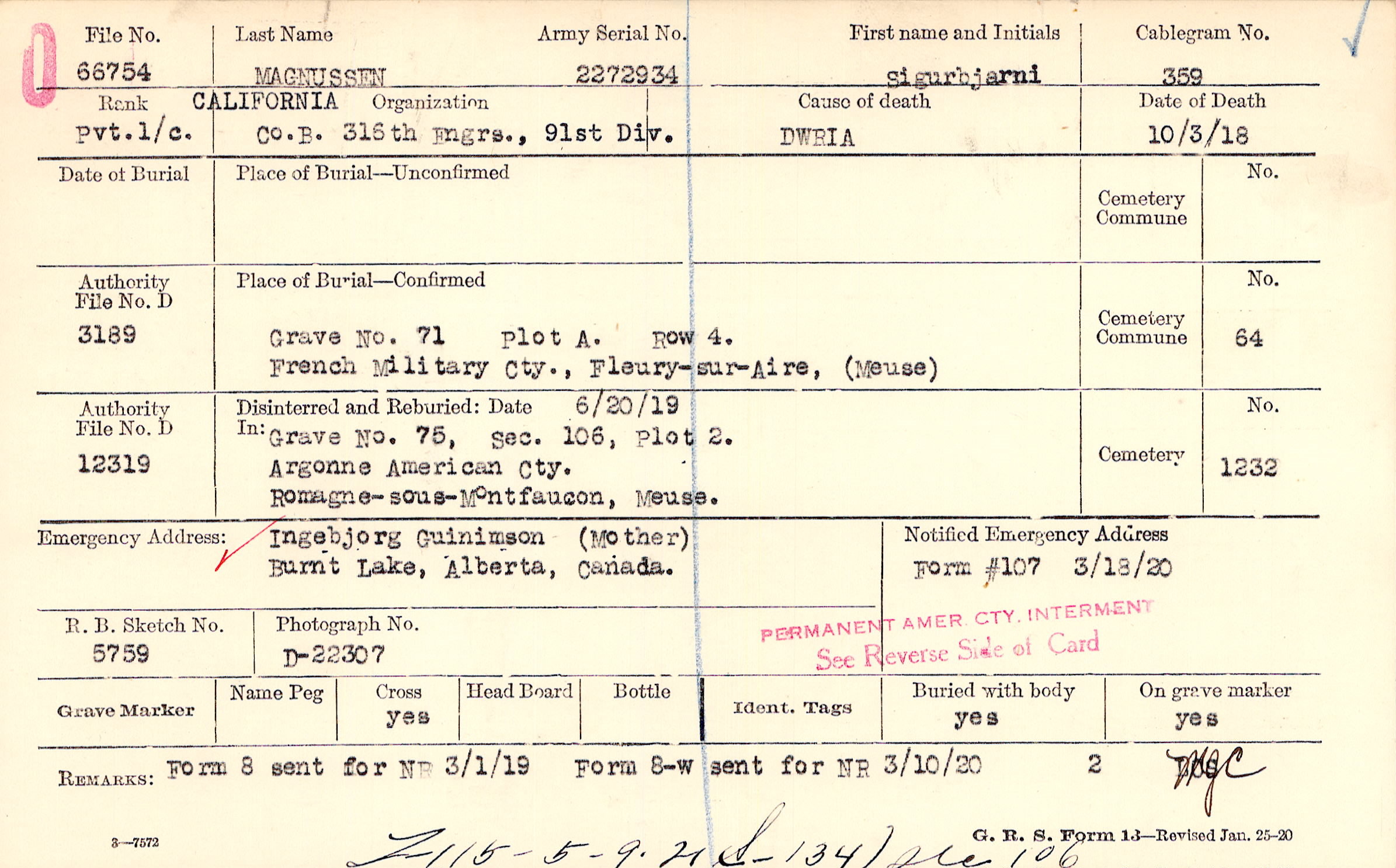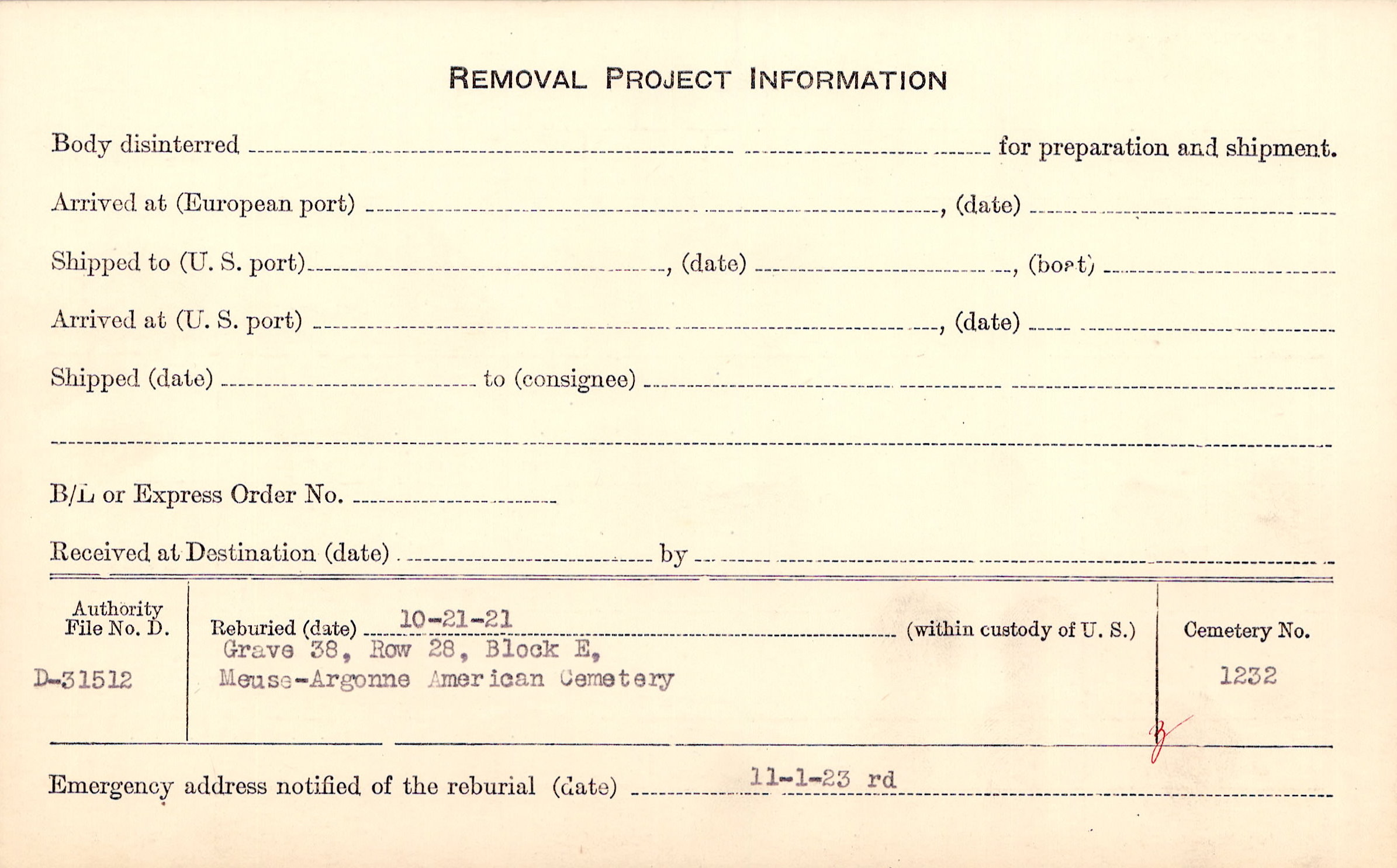 | Permanent Burial in Foreign Cemetery |