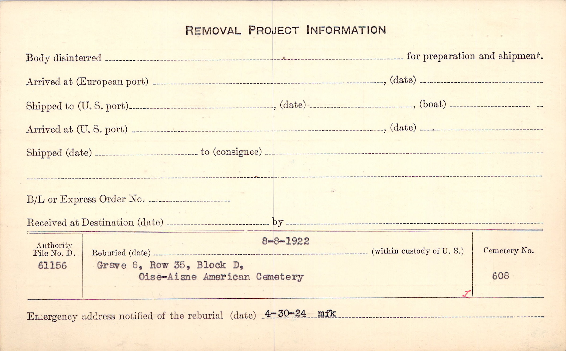 | Permanent Burial in Foreign Cemetery |