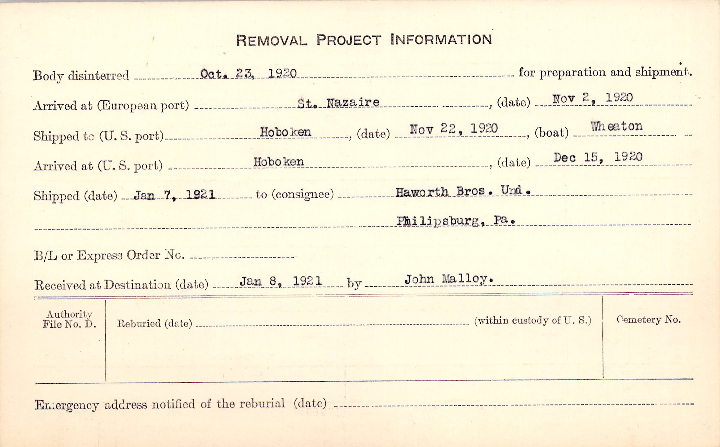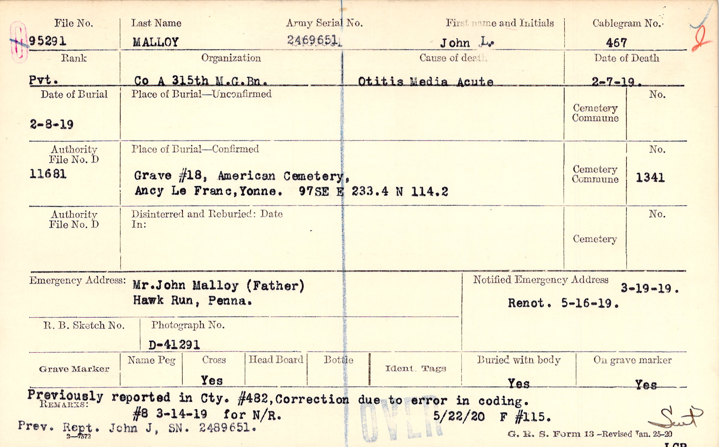Mr.John Malloy (Father), Hawk Run , Penna.