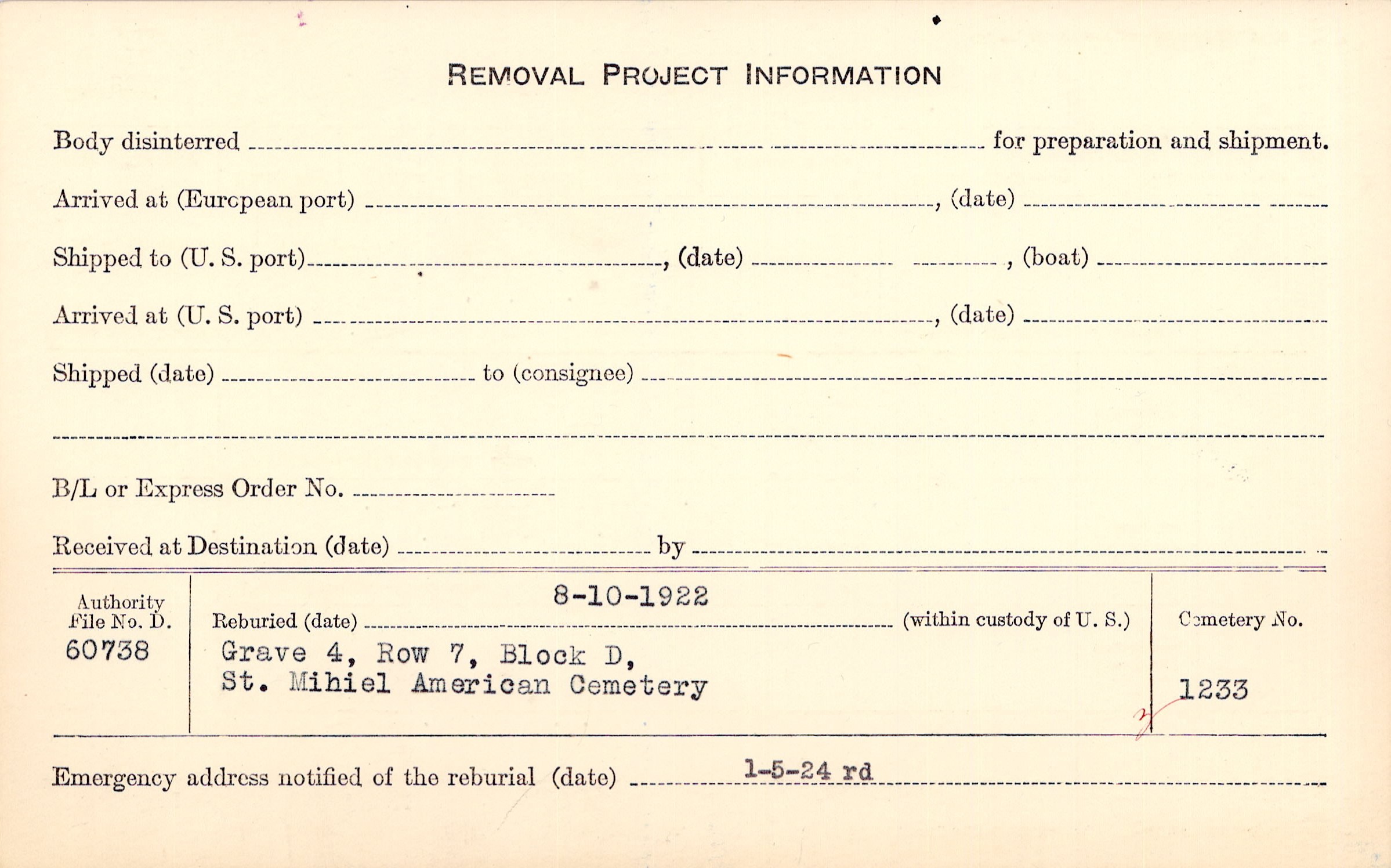 Grave 26, Plot 2, Amer. Cty., Chateauvillian, Haute, Marne.