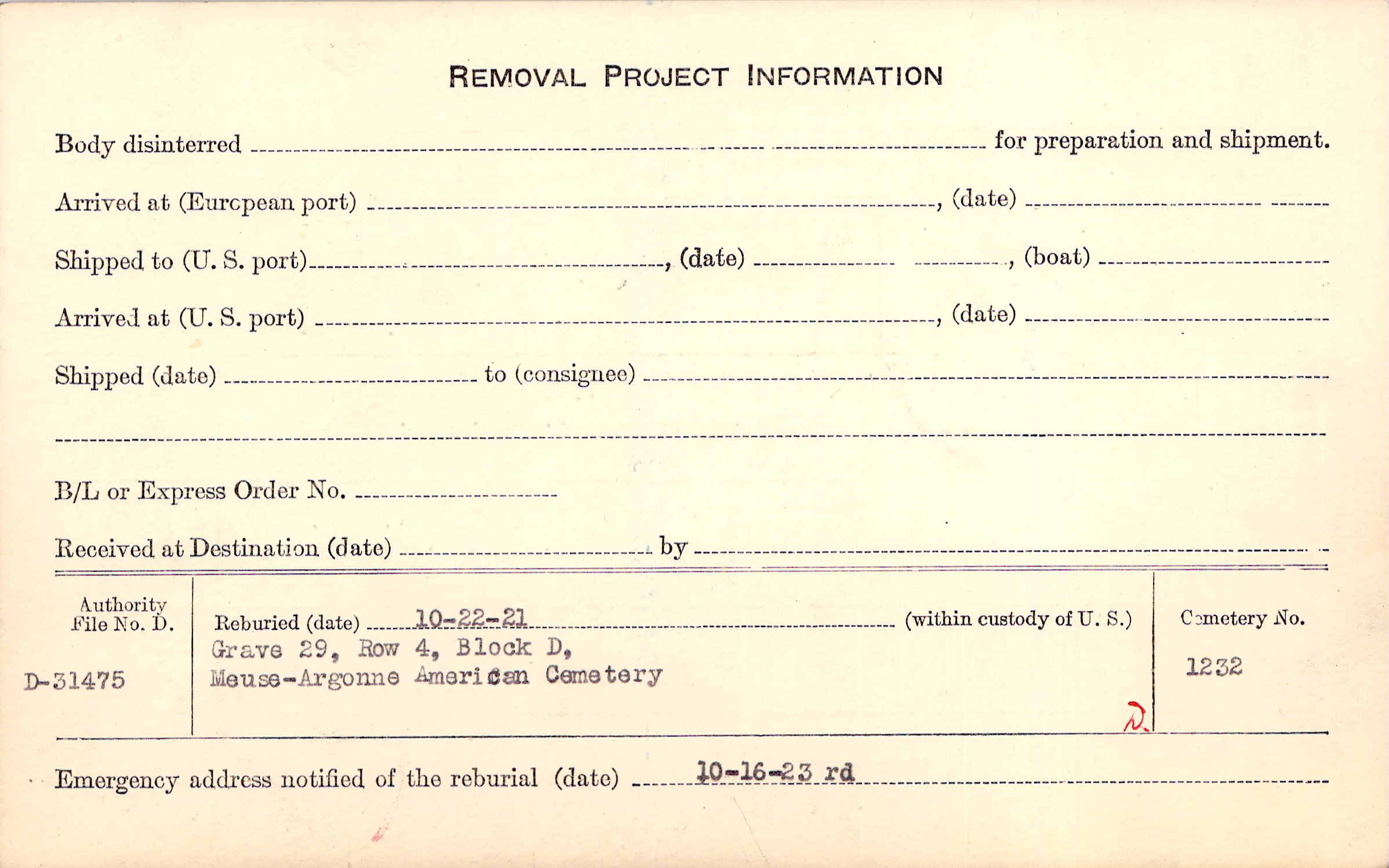 Grave 165, Section 101, Plot 4, Argonne American Cemetery, Romagne-sous-Montfaucon, Meuse