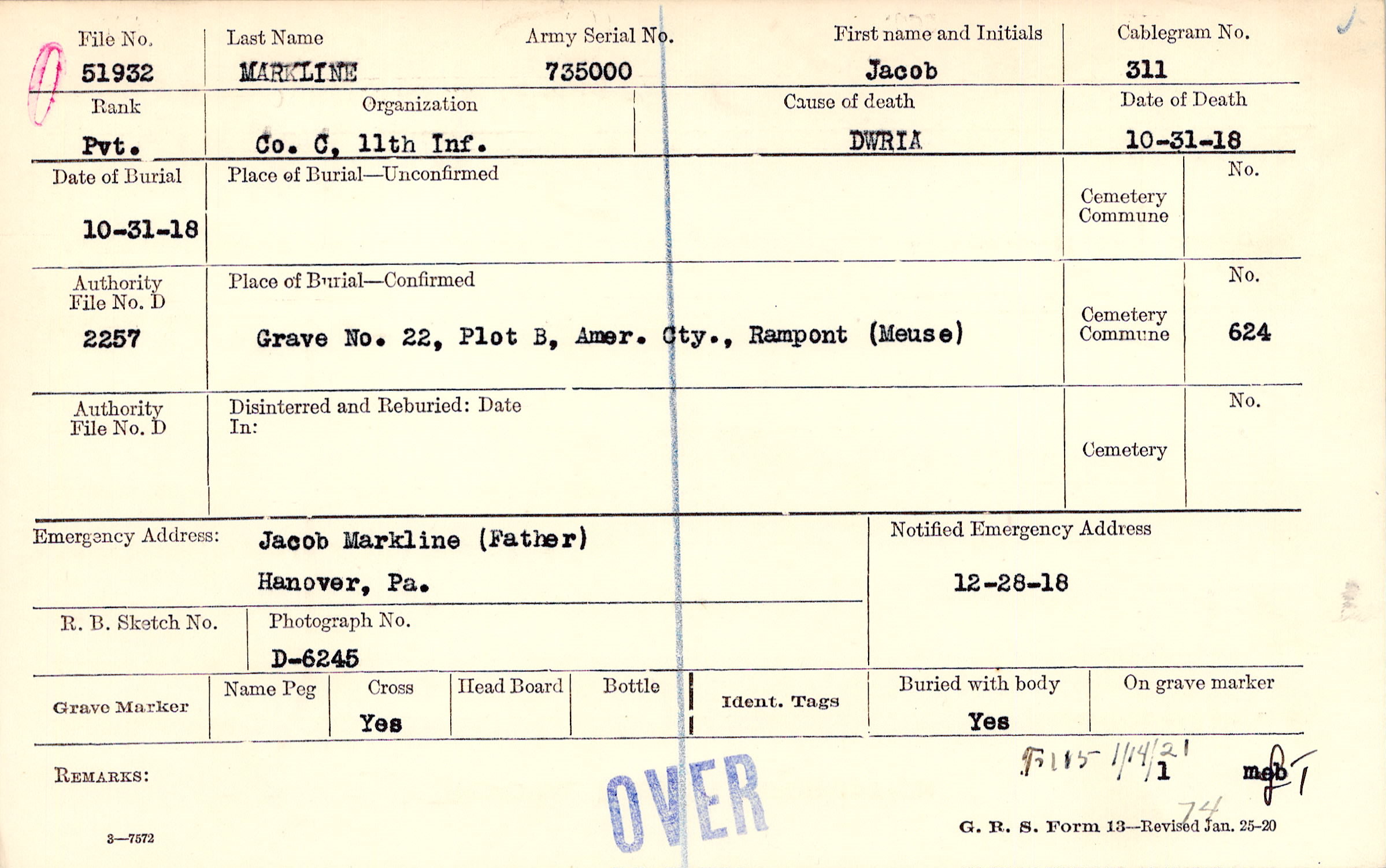 Grave 22, Plot B, Amer. Cty., Rampont, Meuse